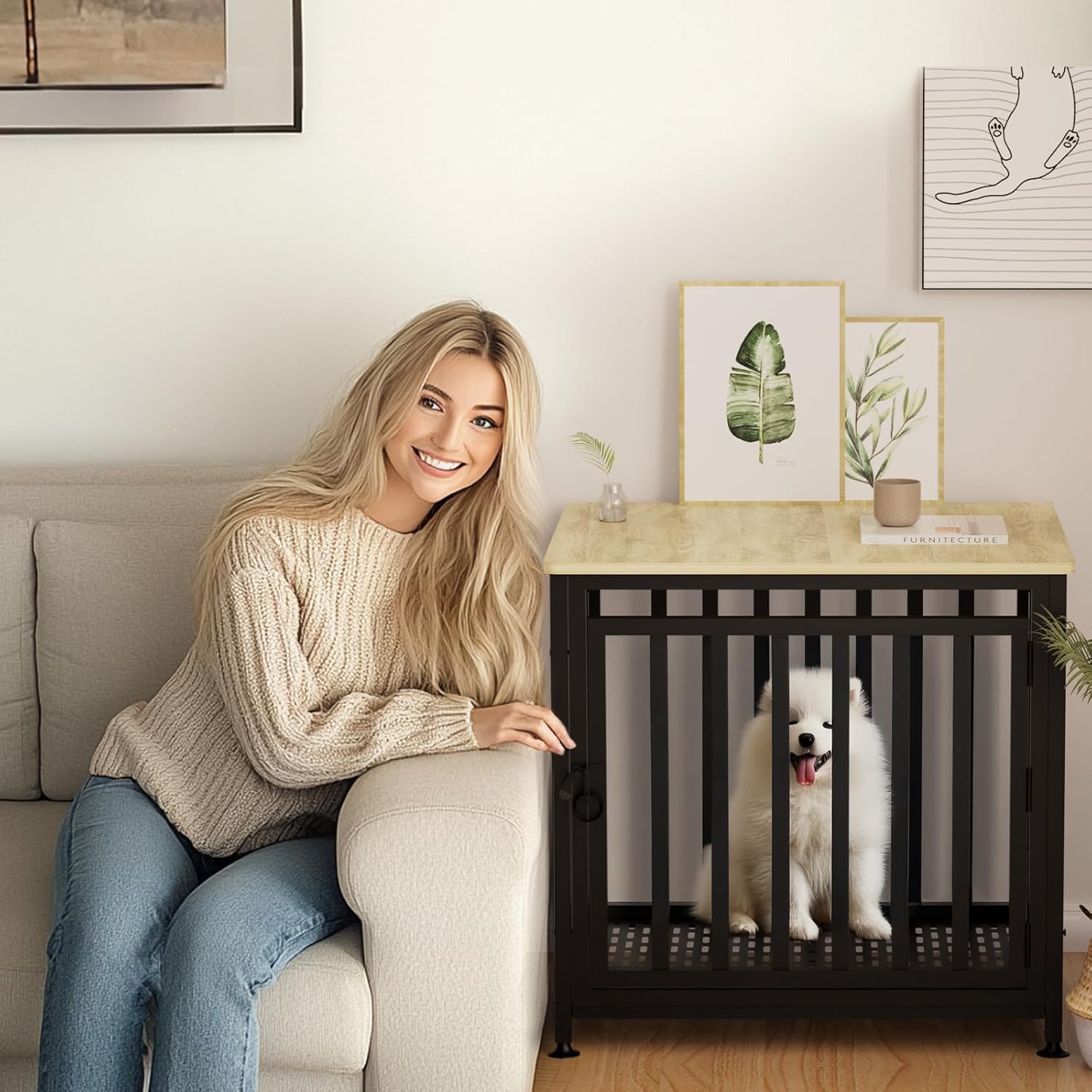 • 【Elegant Furniture Aesthetics】: This dog crate is cleverly designed with a unique furniture design, smooth lines and elegant appearance. The top is specially designed as a practical storage table, which can easily store books, toys, pet supplies or daily small items. Easy to take and put, cleverly combining home aesthetics with practical functions.