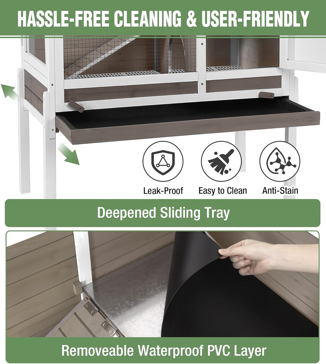 GUTINNEEN Guinea Pig Cage Rabbit Cage Indoor with Chew-Proof Edges, Clean Deep Tray, Leakproof PVC Layer, Small Animals Cage with Adjustable Legs - Brown