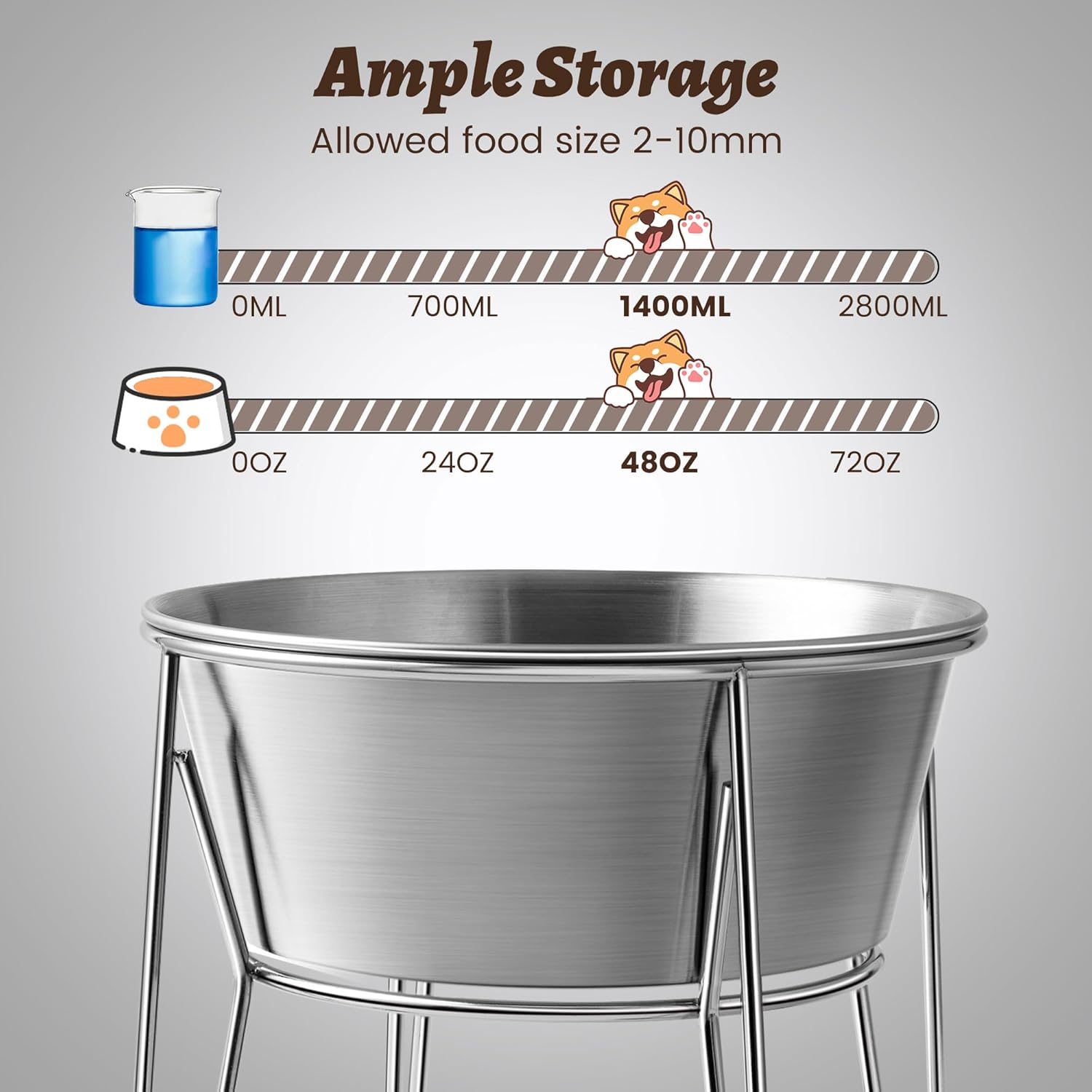 • Stable & Elevated Design : The 6.3-inch stainless steel stand promotes better posture during meals, reducing strain on your dog’s neck and joints while preventing spills.