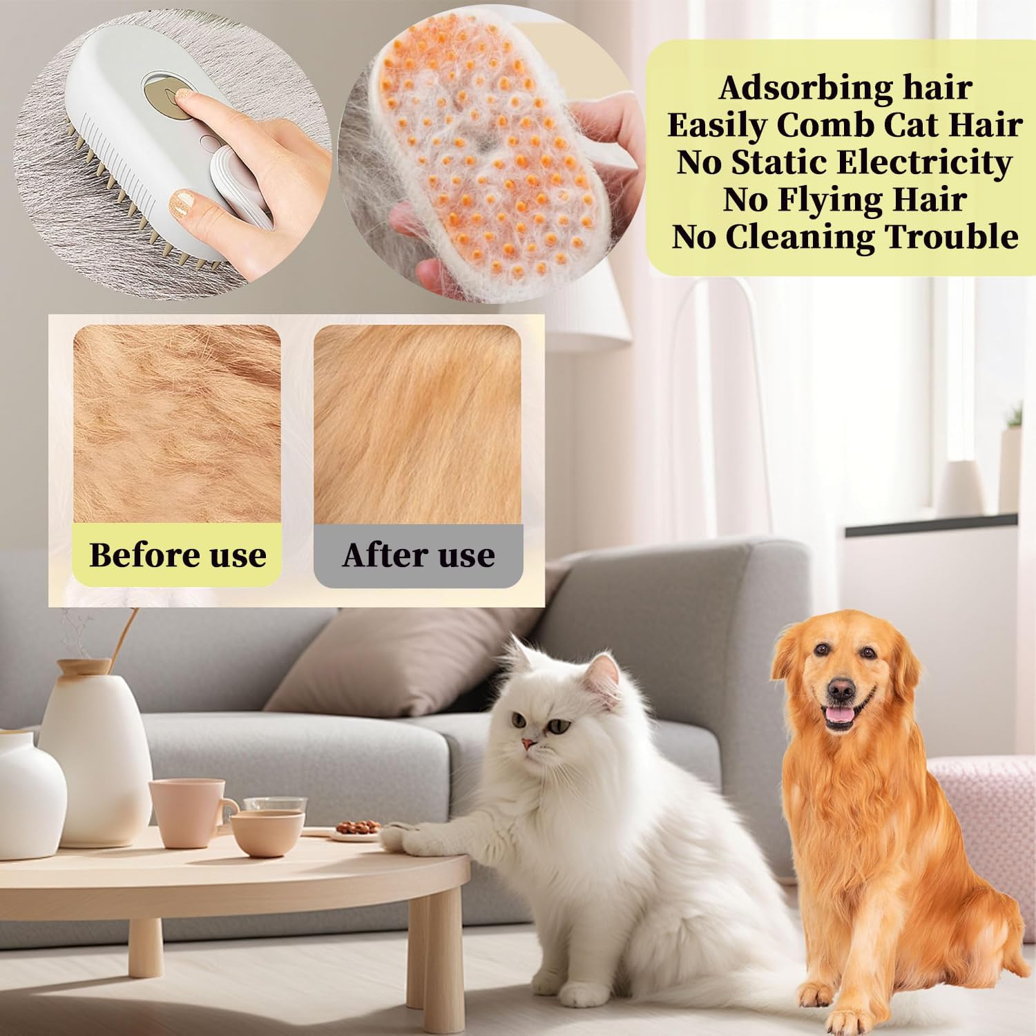 4-in1 Cat Steam Brush for Shedding & Grooming, Spray Hair Removal Comb with 2 Waterless Shampoo, Cat Brush for Massage, Pet Grooming Comb Hair Removal Tool for Cats and Dogs