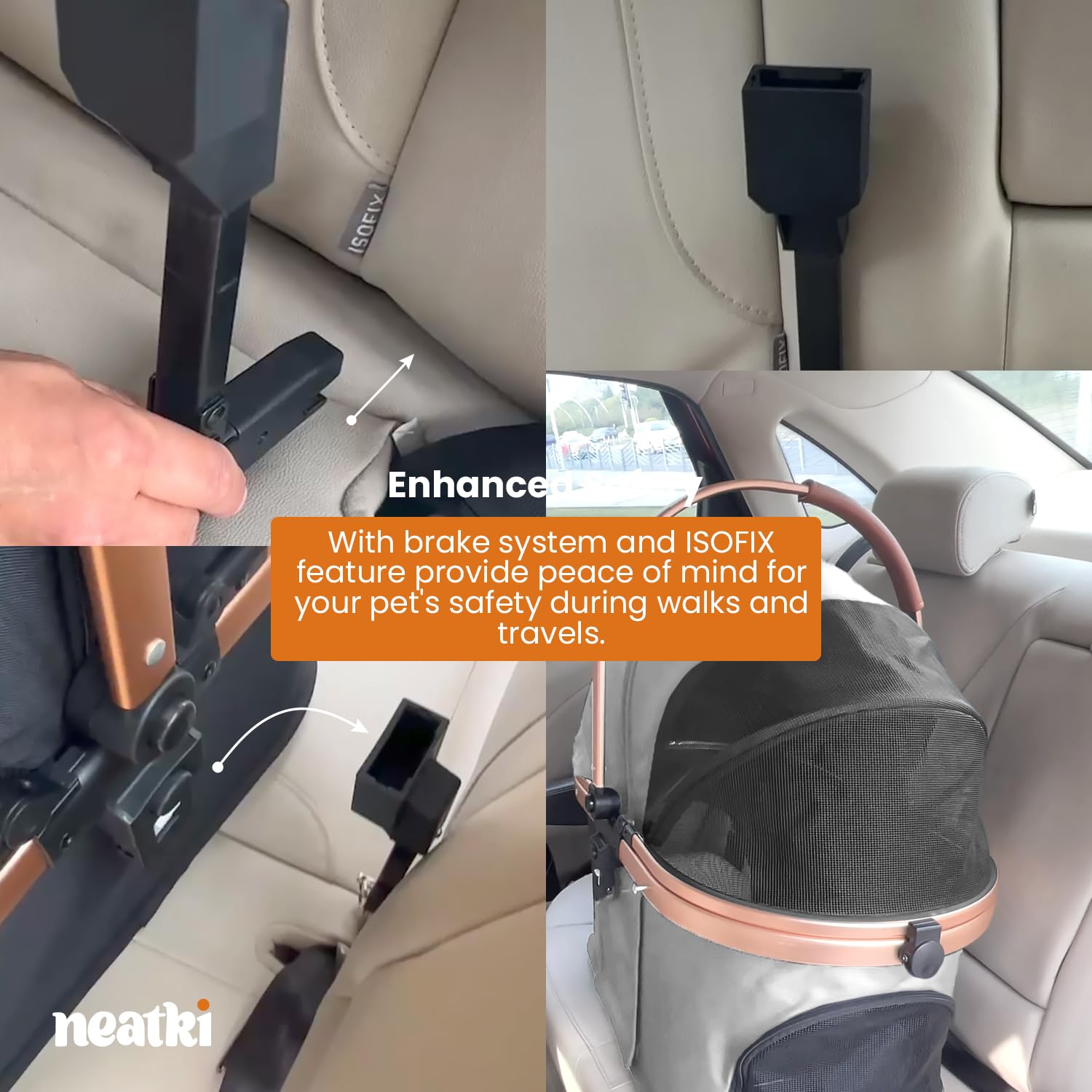• Enhanced Safety – Equipped with a reliable brake system, this stroller keeps your pet secure and gives you peace of mind during walks and outings. Now featuring ISOFIX for easy vehicle installation, ensuring a safer, stress-free travels with your furry friend.