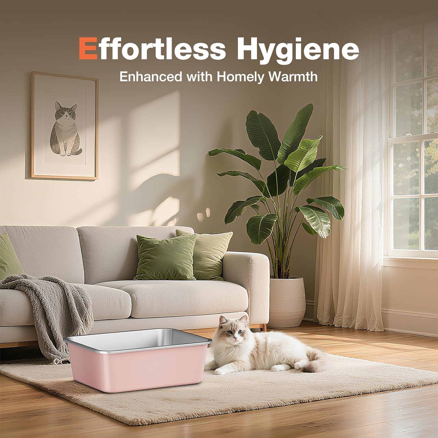 • 【Easy-to-Clean Stainless Steel】: Made from premium stainless steel, this litter box is super easy to clean and does a great job of controlling odors, providing your cat with a fresh and welcoming environment.
