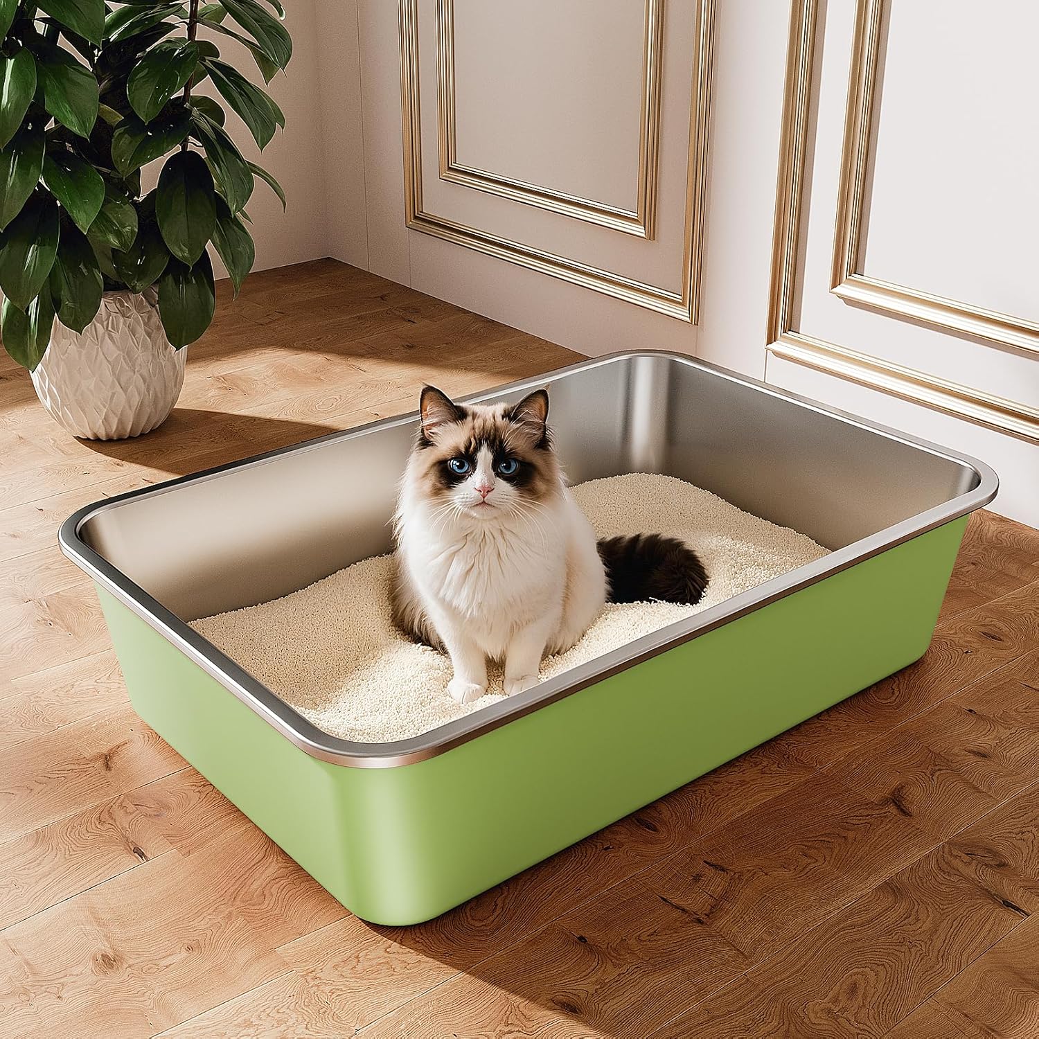 • 【Easy-to-Clean Stainless Steel】: Made from premium stainless steel, this litter box is super easy to clean and does a great job of controlling odors, providing your cat with a fresh and welcoming environment.