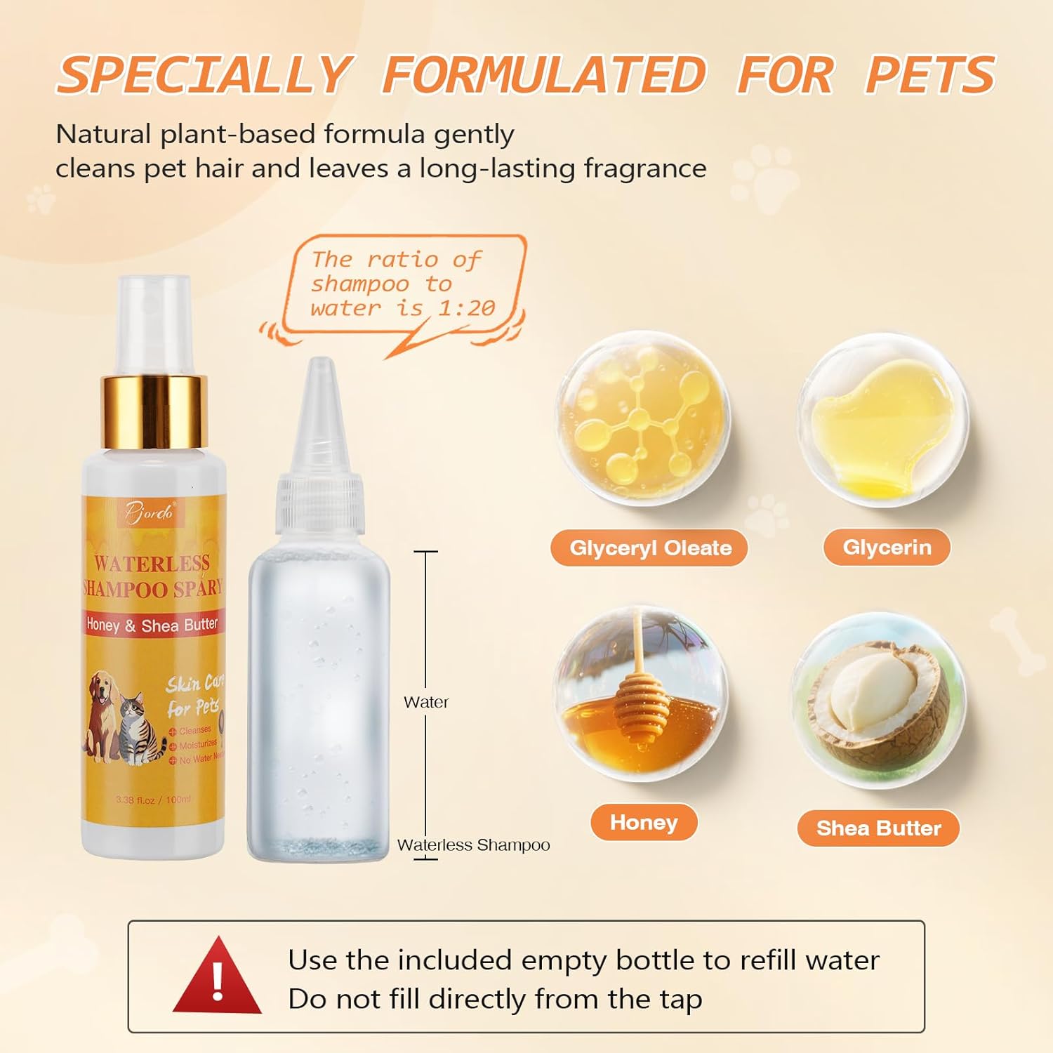 - All-in-One Pet Grooming Set: Pjordo Pet Steam Brush Set includes a steam brush for cats & dogs, a 100ml bottle of pet waterless no-rinse shampoo spray, and a 60ml water drop bottle for easily adding water or other liquids to the steam brush's water tank. Our pet grooming tools are fully functional and a must-have for busy pet parents.