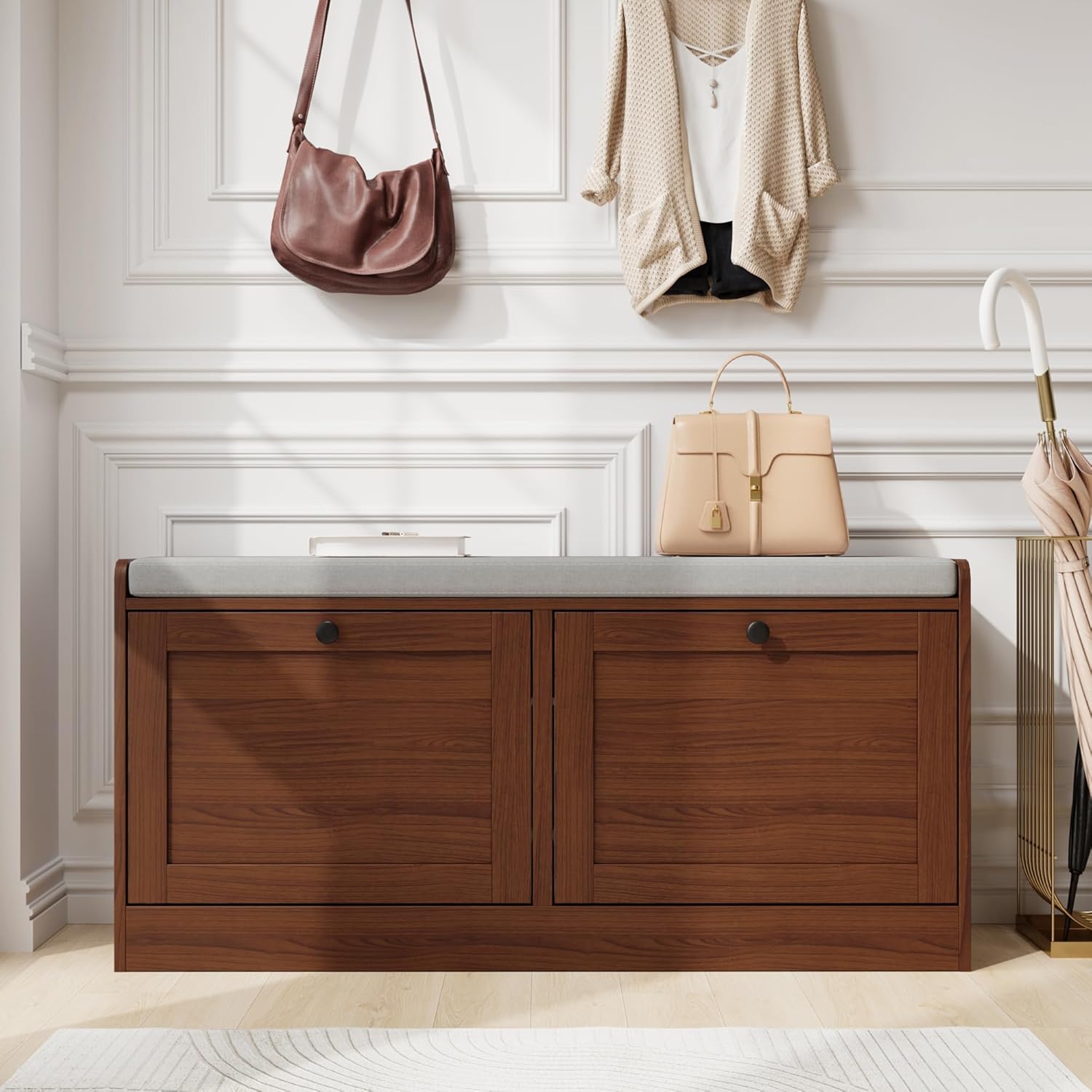 • Flexible Shoe Storage Space: With an adjustable and removable shelf in the drawers, this entry bench allows you to customize the space for different types of footwear. Whether itโ€™s slippers or sneakers, our farmhouse shoe bench ensures that all your favorite shoes have a dedicated home