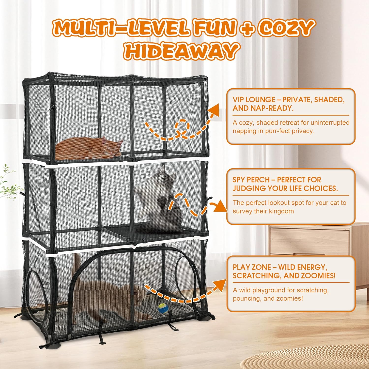 • Ultra-Safe Enclosed Design – The fully escape-proof mesh structure keeps cats securely inside while preventing predators from entering, ensuring safety for kittens, adult cats, and multi-pet households as they enjoy the outdoors.