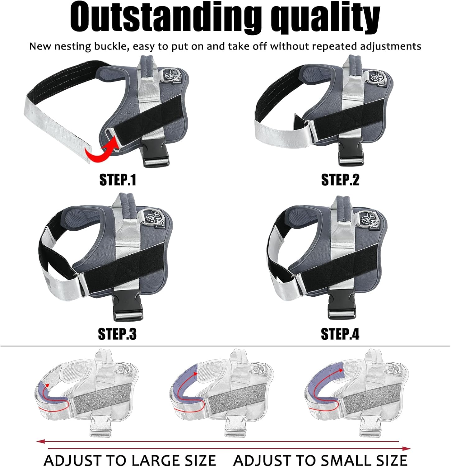 • STURDY HANDLE: The adjustable dog harness with rugged nylon handle further enhances your distance from the dog and is more intimate with each other. Easy on dog harness is also the best partner for dogs and is easy to control your dog.