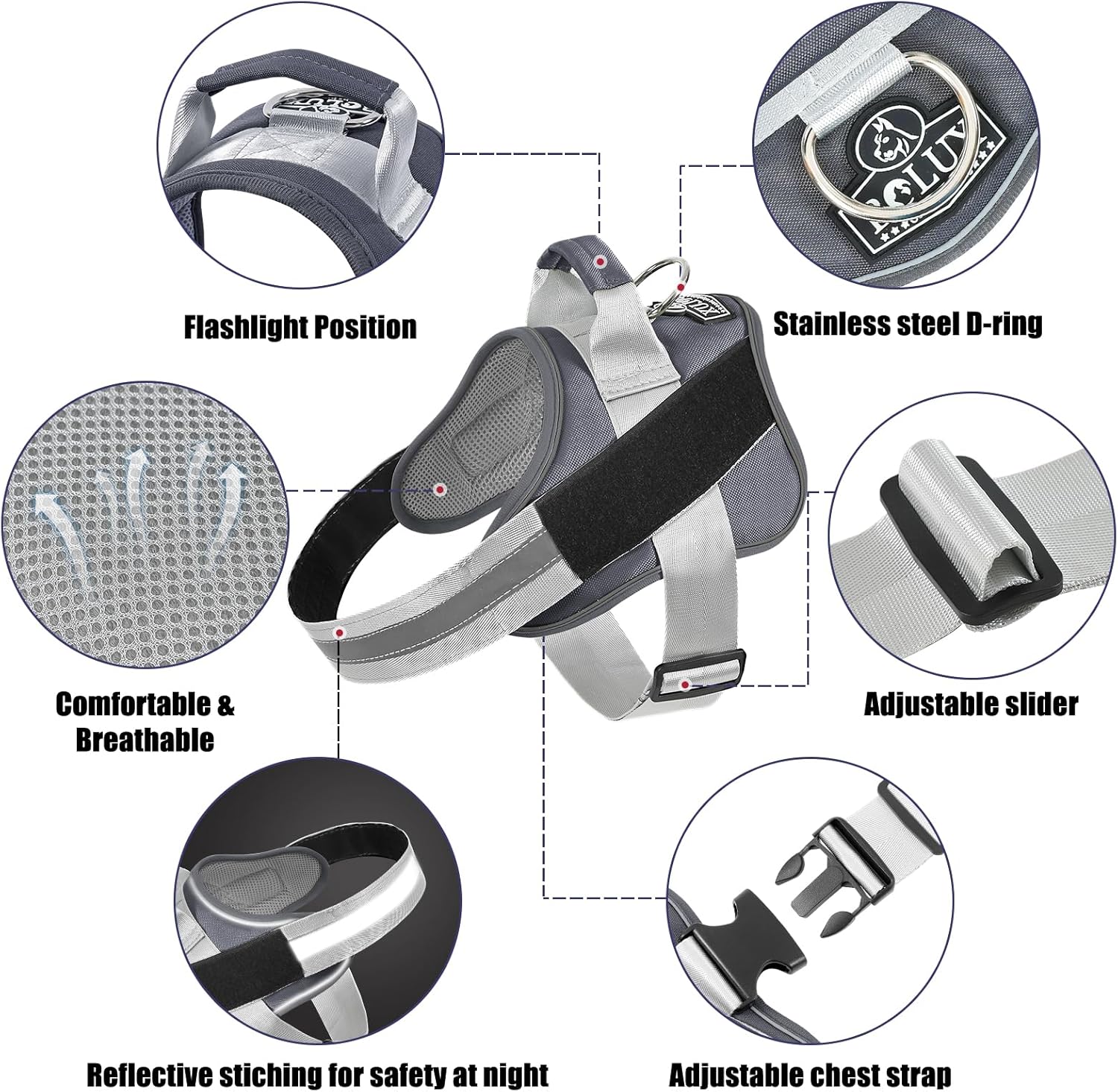 Bolux Dog Harness, No-Pull Reflective Dog Vest, Breathable Adjustable Pet Harness with Handle for Outdoor Walking - No More Pulling, Tugging or Choking