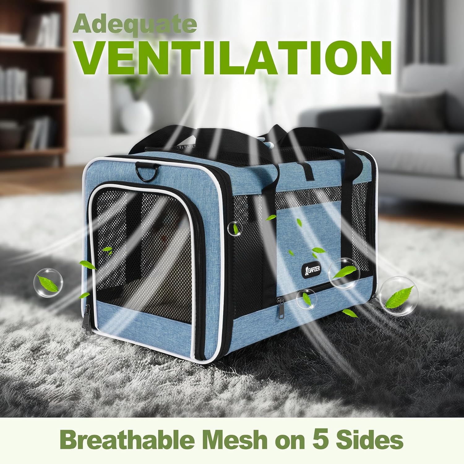 • 360ยฐ Ventilation & Dual-Entry - Four-sided mesh ensure constant airflow during transport, while the wide top opening and side door facilitate stress-free transfers and quick check-ins for rabbits and puppies