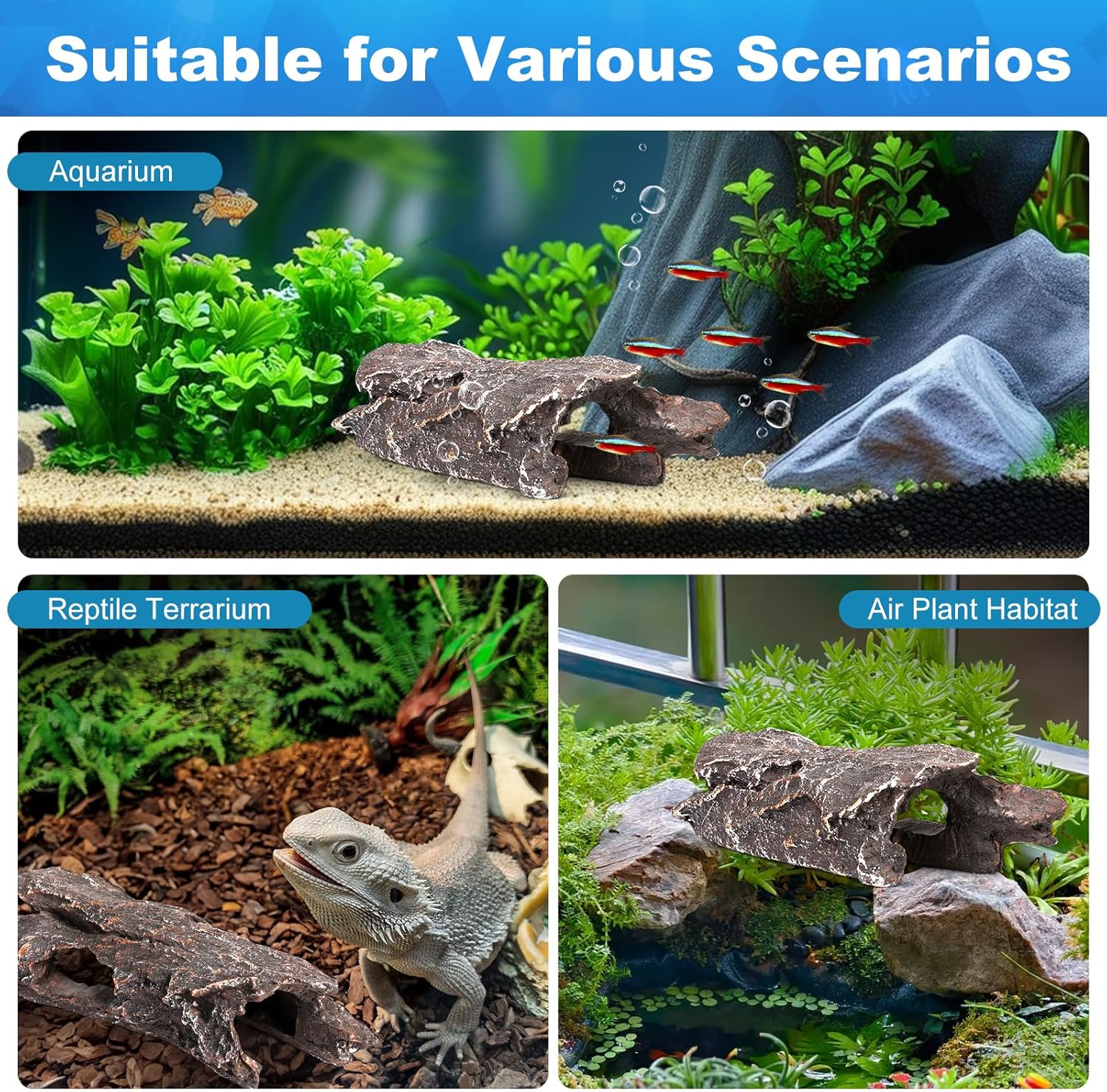 • Natural Aquarium Cave Design: Crafted from high-quality resin, this hollow tree trunk provides essential hiding spots for fish to rest and explore. The realistic bark texture creates authentic shelter spaces. Perfect for betta fish and small reptiles.