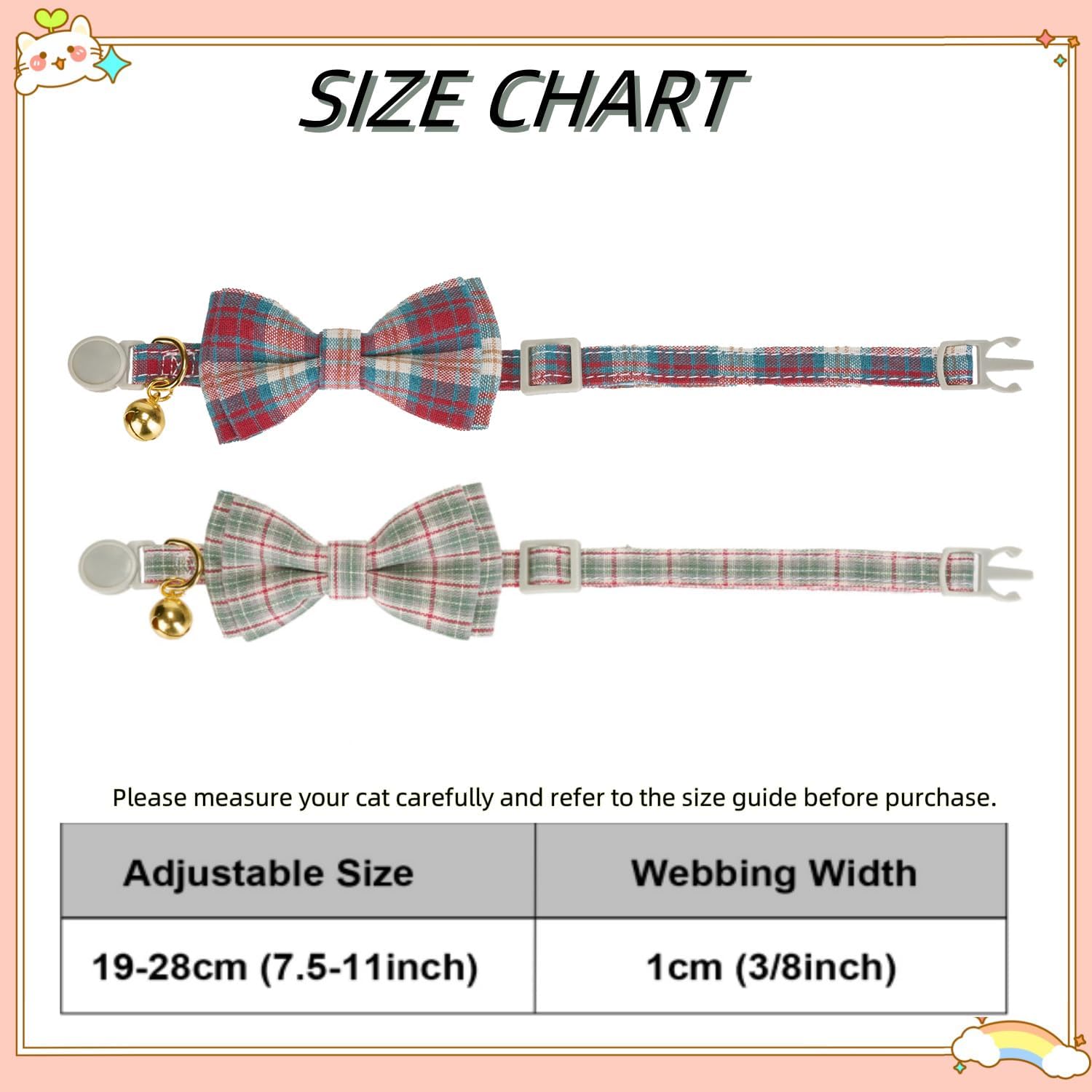 2 Pack Soft Cotton Christmas Cat Collars with Bowtie and Bell Breakaway Plaid Cat Kitten Collar(Red and Green)