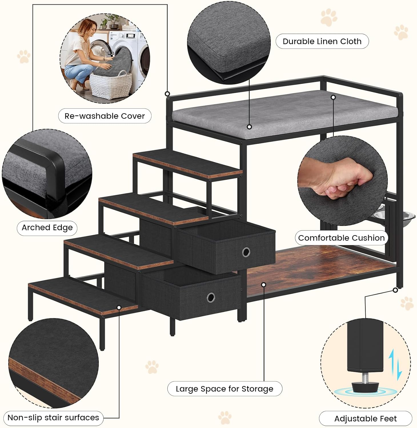 • SMART MULTI-FUNCTIONAL DESIGN: The dog window perch with stairs offers a cozy top sleeping space with a cushion and a versatile bottom area – perfect for creating a second pet sleeping nook or storing toys. Allows two pets to enjoy the space simultaneously. Plus, the stairs include two upgraded, spacious storage drawers.