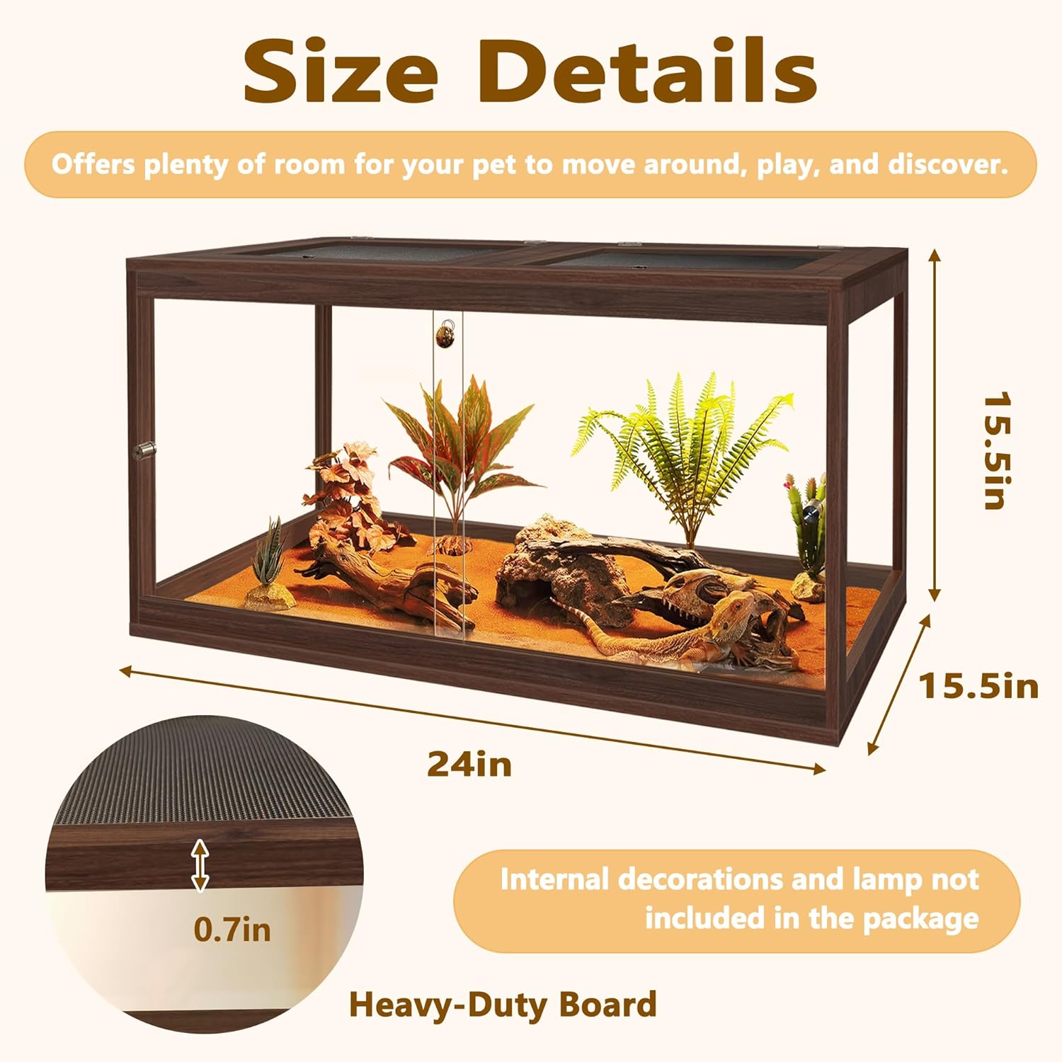 • 【Spacious and Comfortable Interior】Available in four length options (24", 30", 36", and 48"), this enclosure provides ample room for reptiles to explore, bask, and hide. Check the second image for detailed dimensions to choose the right size for your pet. An acrylic bottom liner helps with mess management and simplifies cleaning.