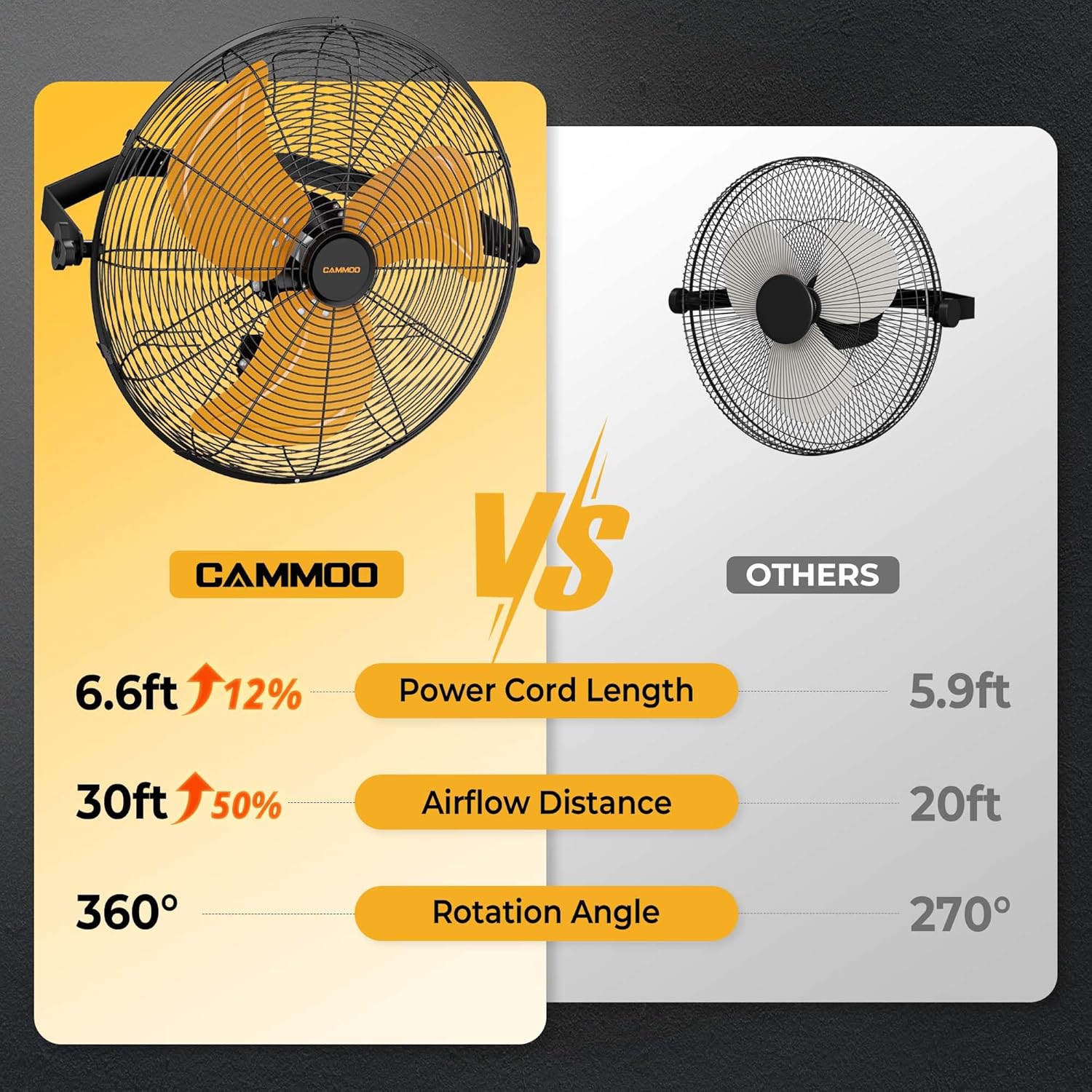- Effortless Control with Extended Reach:Featuring a 6.6 ft power cord (12% longer than others), this wall mount fan effortlessly covers most distance needs, allowing you to enjoy cool airflow without extra wiring hassle. Ideal for industrial fan setups prioritizing convenience and flexible placement.