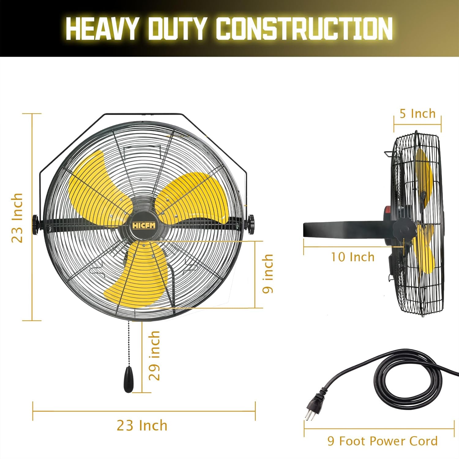 HiCFM 4600 CFM 18 inch High Velocity Wall Mounted Fan, TEAO Enclosure Motor, Safety Yellow Blade, 9 FT Cord, 180 Degree Tilting, 3 Speed Industrial Shop Fan for Patio, Garage Use - UL Listed, 2 Pack