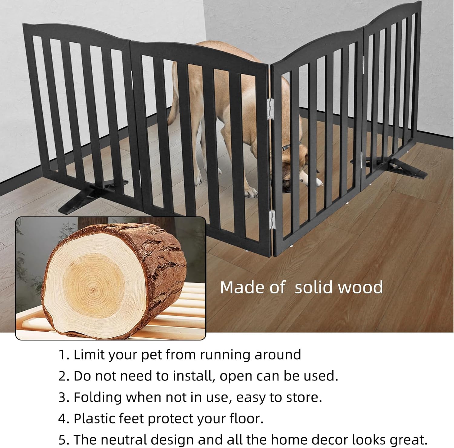 • 【3 PANELS】 Dog gates is built with 3 separate panels, secured together with sturdy stainless steel hinges.dog gates is a dog fence, room divider, and pet pen all in one.