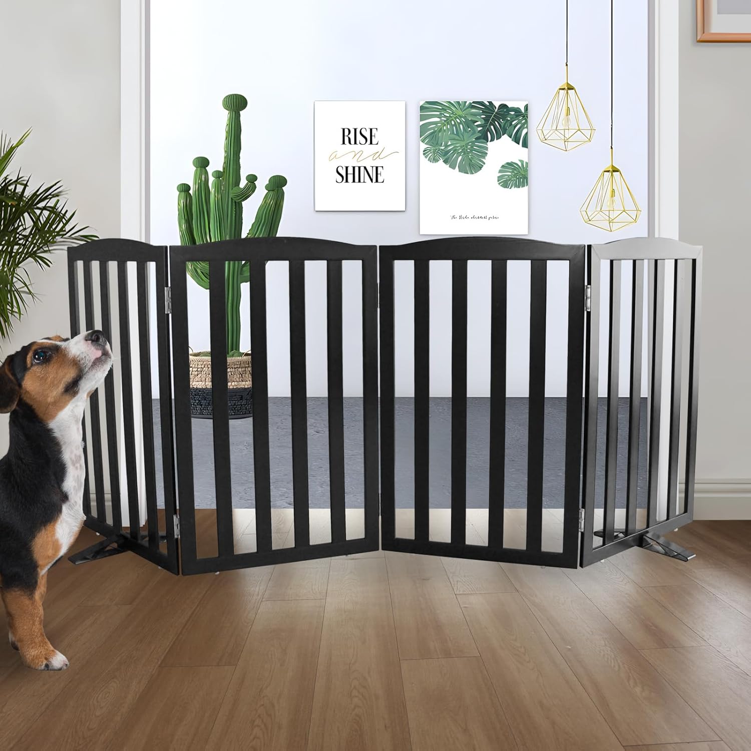 • 【4 PANELS】 Dog gates is built with 4 separate panels, secured together with sturdy stainless steel hinges.dog gates is a dog fence, room divider, and pet pen all in one.