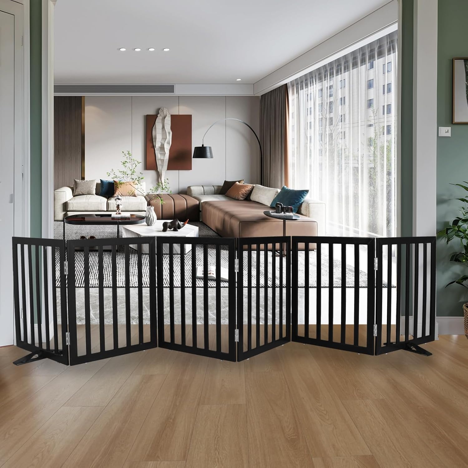 • 【6 PANELS】 Dog gates is built with 6 separate panels, secured together with sturdy stainless steel hinges.dog gates is a dog fence, room divider, and pet pen all in one.