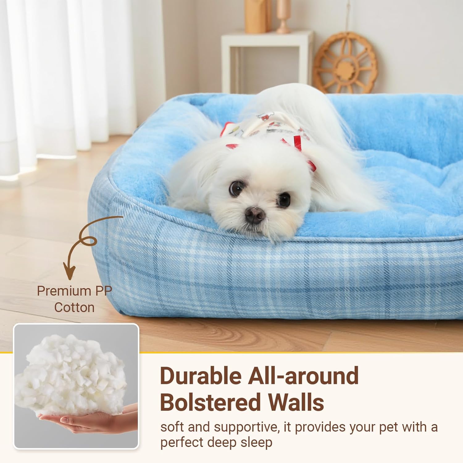 • 【Super Cozy Fabric】The dog bed for small dogs features luxurious soft fabric that provide a calming feel and suits for all seasons to use. It also adopts fashionable checkered design that matches various styles of furniture and decorate your home.