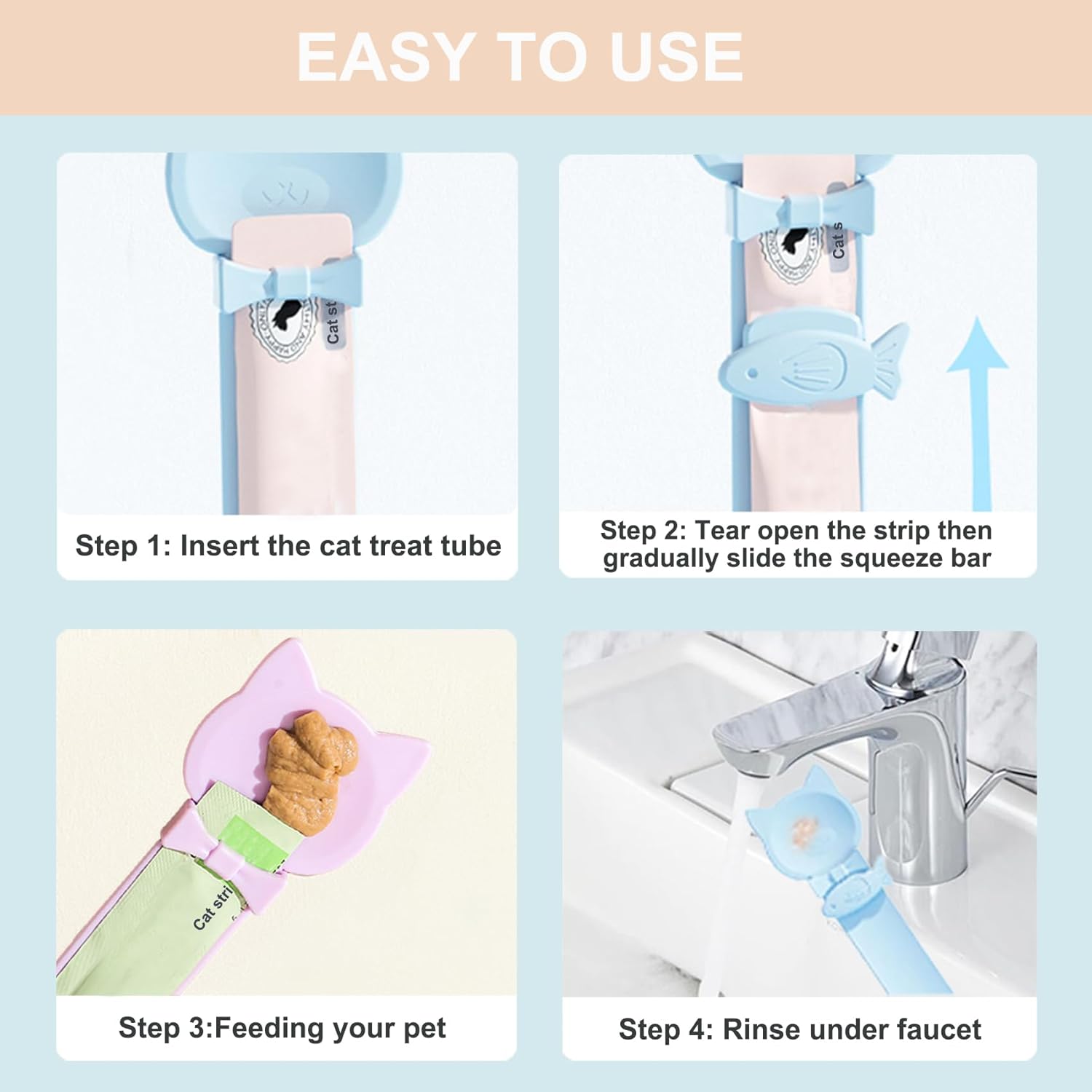 • High Quality Material:This lickable spoons cat treats is made of food grade material and your can use it with safety.Just a gentle squeeze,you can feed your cat with the precise amount of cat wet treat or food