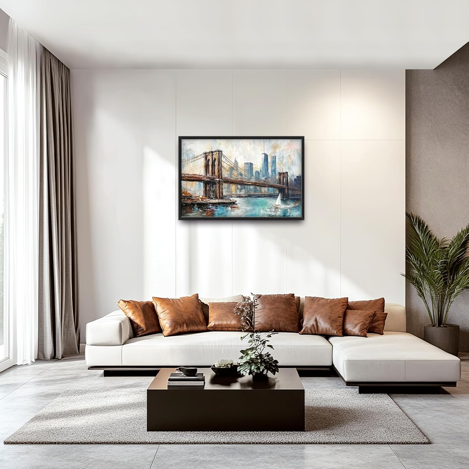 Extra Large Framed Brooklyn Bridge Wall Art,New York City Wall Decor,Abstract Skyline Cityscape Pictures for Living Room,Canvas Print Painting Modern Artwork Bedroom Office Bathroom 36L x24W