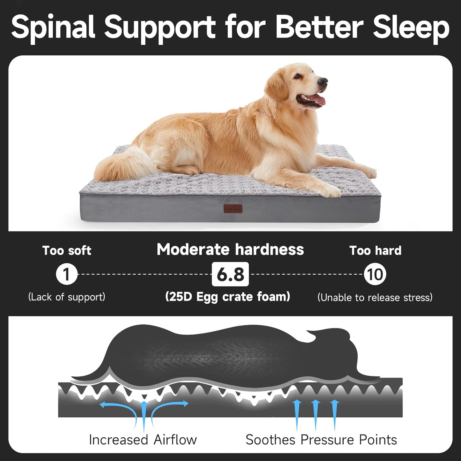 OhGeni Orthopedic Waterproof & Machine Washable Dog Bed for Large Pets, Suitable for Crates, 25D Egg Crate Foam, Non-Slip Bottom & Removable Cover, Houndstooth Fabric, 41 Inches(Gray)