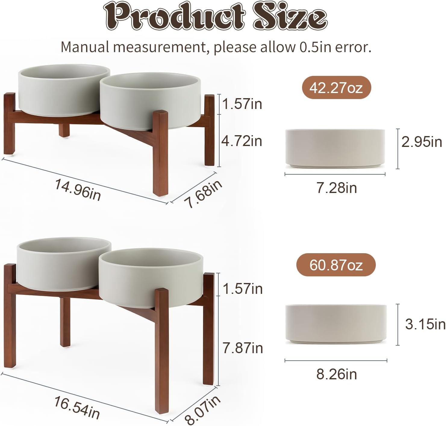 • UPGRADED ACACIA WOOD SHELF: Compared to the usual wood stand, this feeding bowl uses higher quality acacia wood, which not only enhances the overall stability and durability, but also the natural wood grain and warm tone of the wood stand can beautify the home space. The acacia wood stand has better durability and maintains a stable temperament even in humid environments
