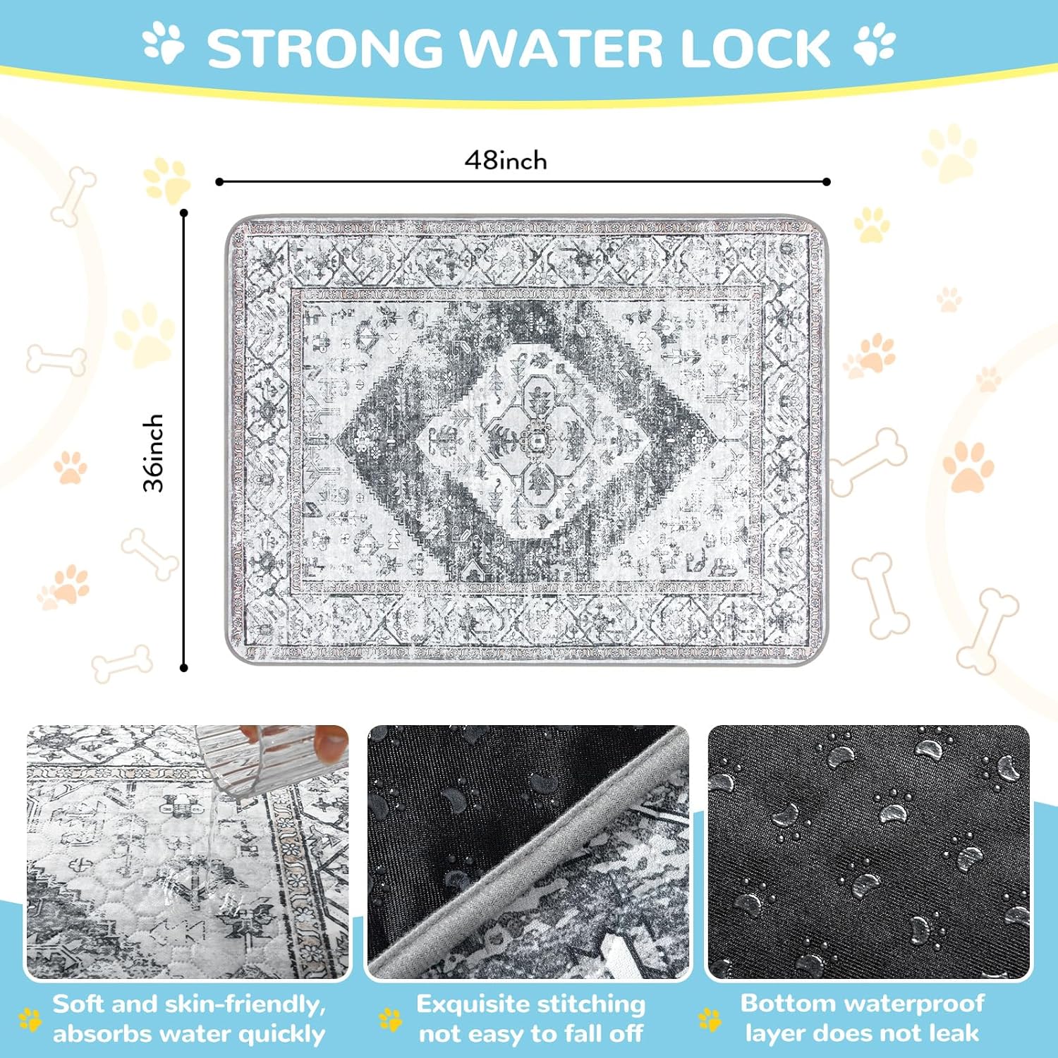 Lahome Reusable Washable Puppy Pads - 2 Pack Super Absorbent & Waterproof Dog Training Mats for Potty, Crate and Floor - Leakproof Pee Pads with Non-Slip Backing (Gray, 36"x48")