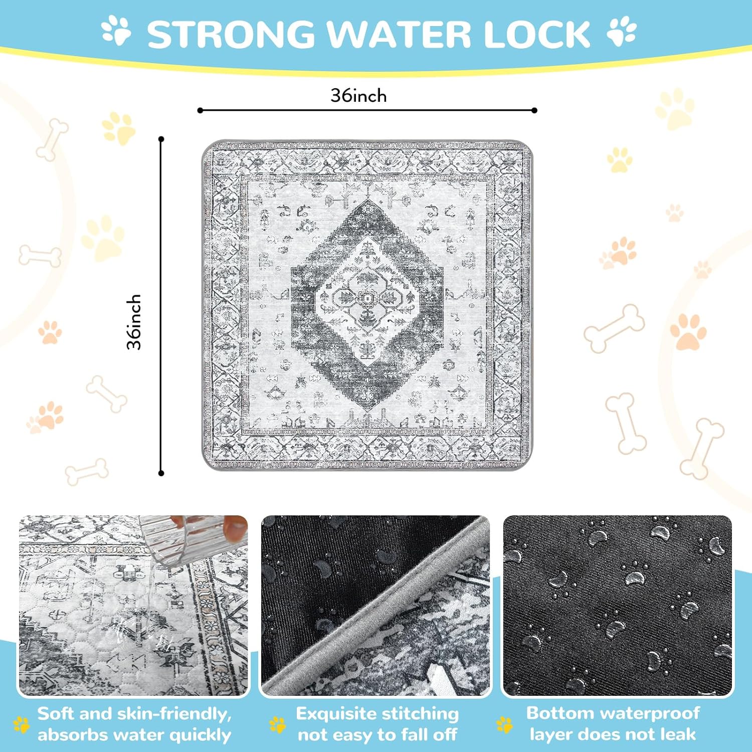 Lahome Super Absorbent Washable Pee Pads for Dogs - Secure Floor Protection - Non-Slip, Leakproof Reusable Pads for Training, Crates & Playpens (2 Pack, 36"x36", Gray)