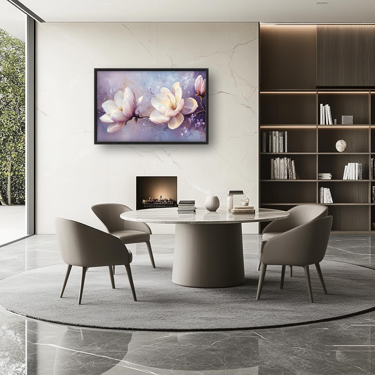 Large Floral Landscape Wall Art for Living Room, Purple Flower Canvas Oversized Wall Decor, Aesthetics Framed Pictures Painting Print Artwork for Bedroom Office 36L" x 24W"