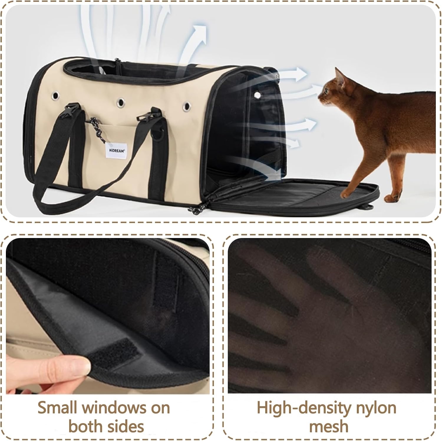 Pet Carrier Bag, Foldable Cat Bag Airline Approved, Soft-Sided Cat Travel Bag, Washable Dog Carrier Privacy Protection for Home Outdoor Travel(S, Brown)