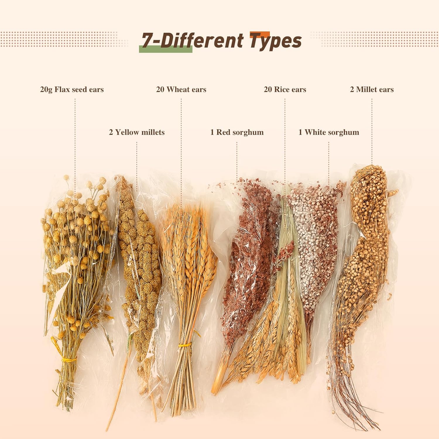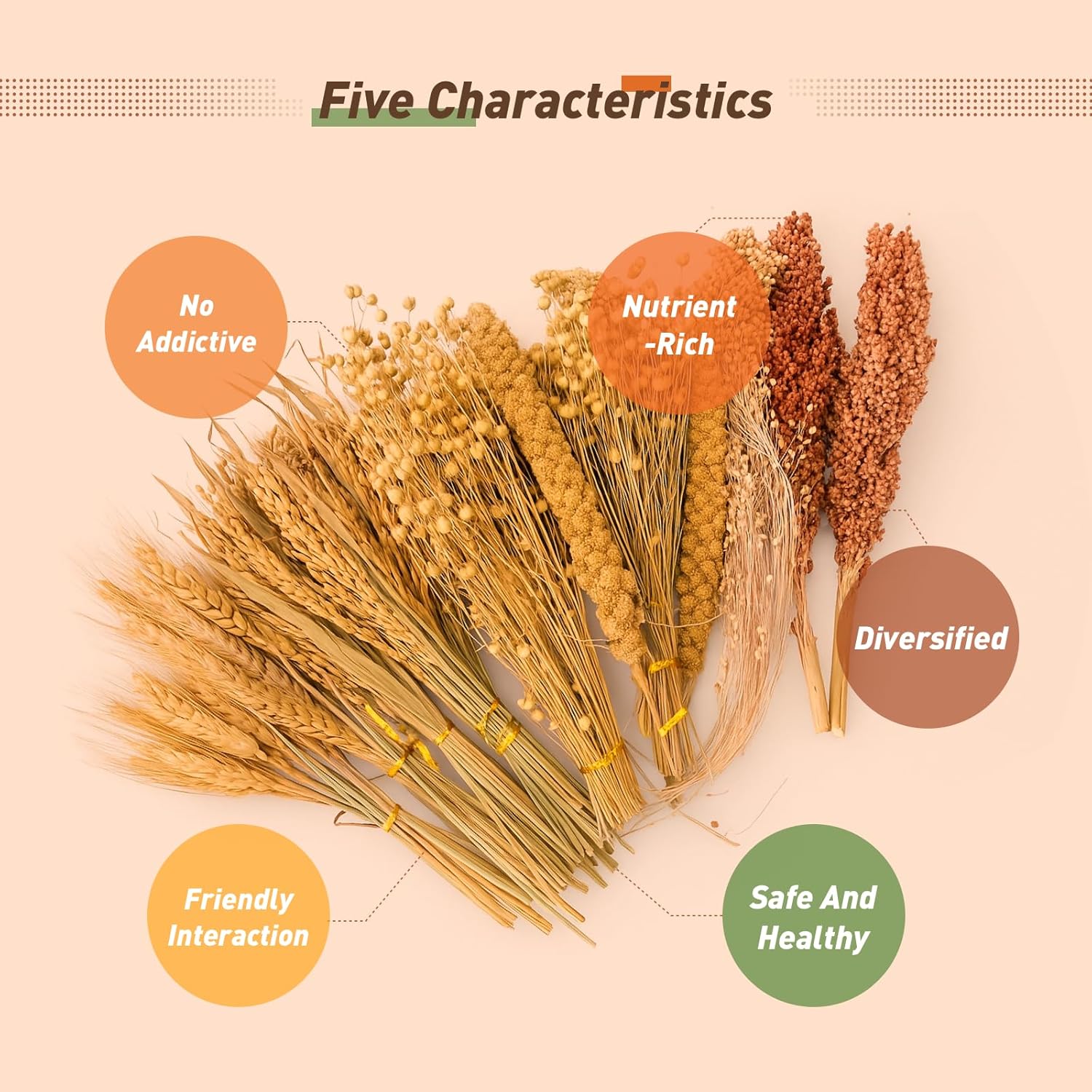 • Abundant Variety & Great Value:​​ Enjoy large quantities at an affordable price. Features rich mixes: the 5-type blend includes rice ears, wheat ears, flax seed ears, yellow millets, and millet ears; the 7-type blend adds red and white sorghum for endless enrichment.