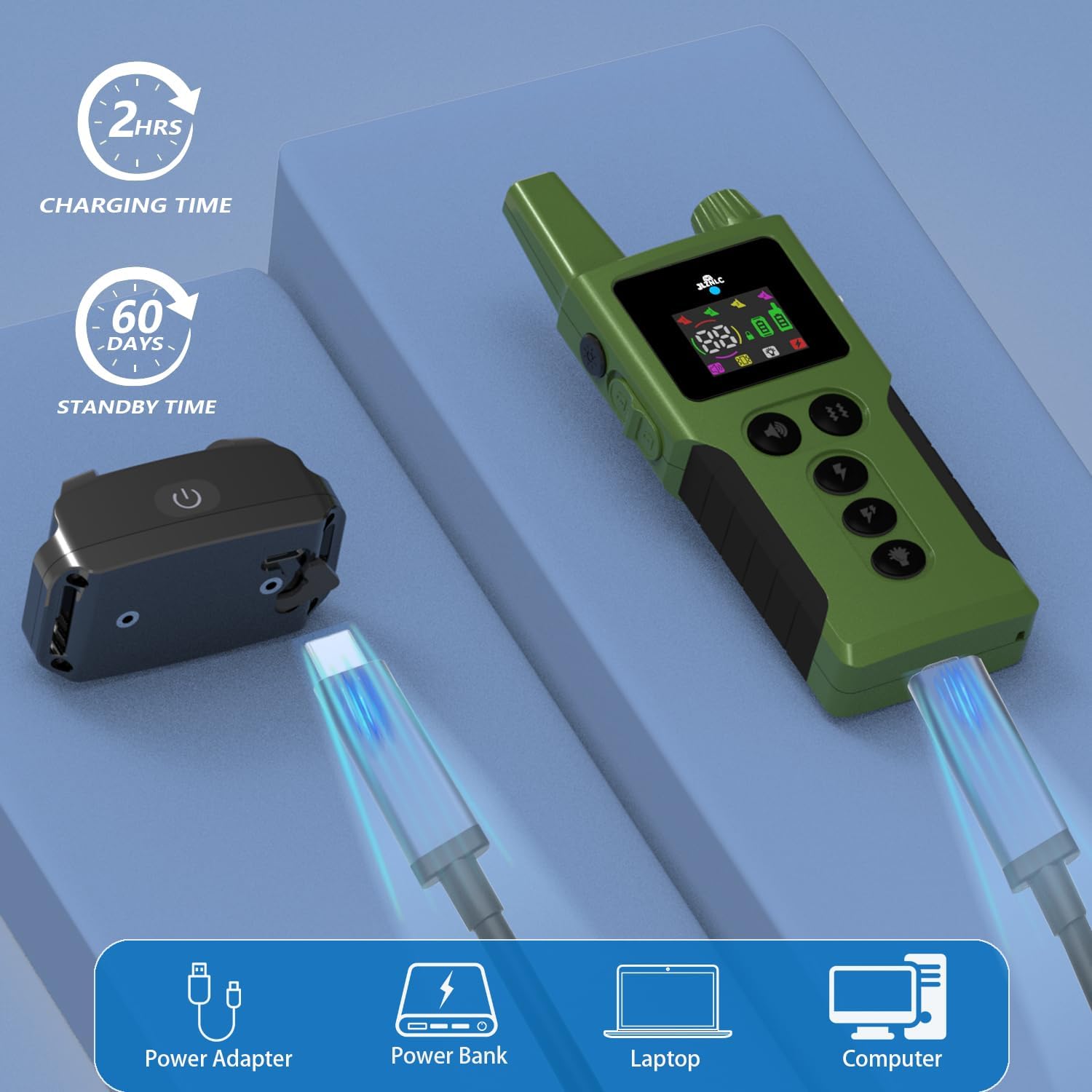 • 【Incredible Battery Life & Quick Charging】 The collar features USB charging with a 2-in-1 fast charging design that takes just 2 hours to fully charge. It offers long-lasting battery life, with up to 30 days of standby time for the collar and 60 days for the remote, reducing the need for frequent recharges