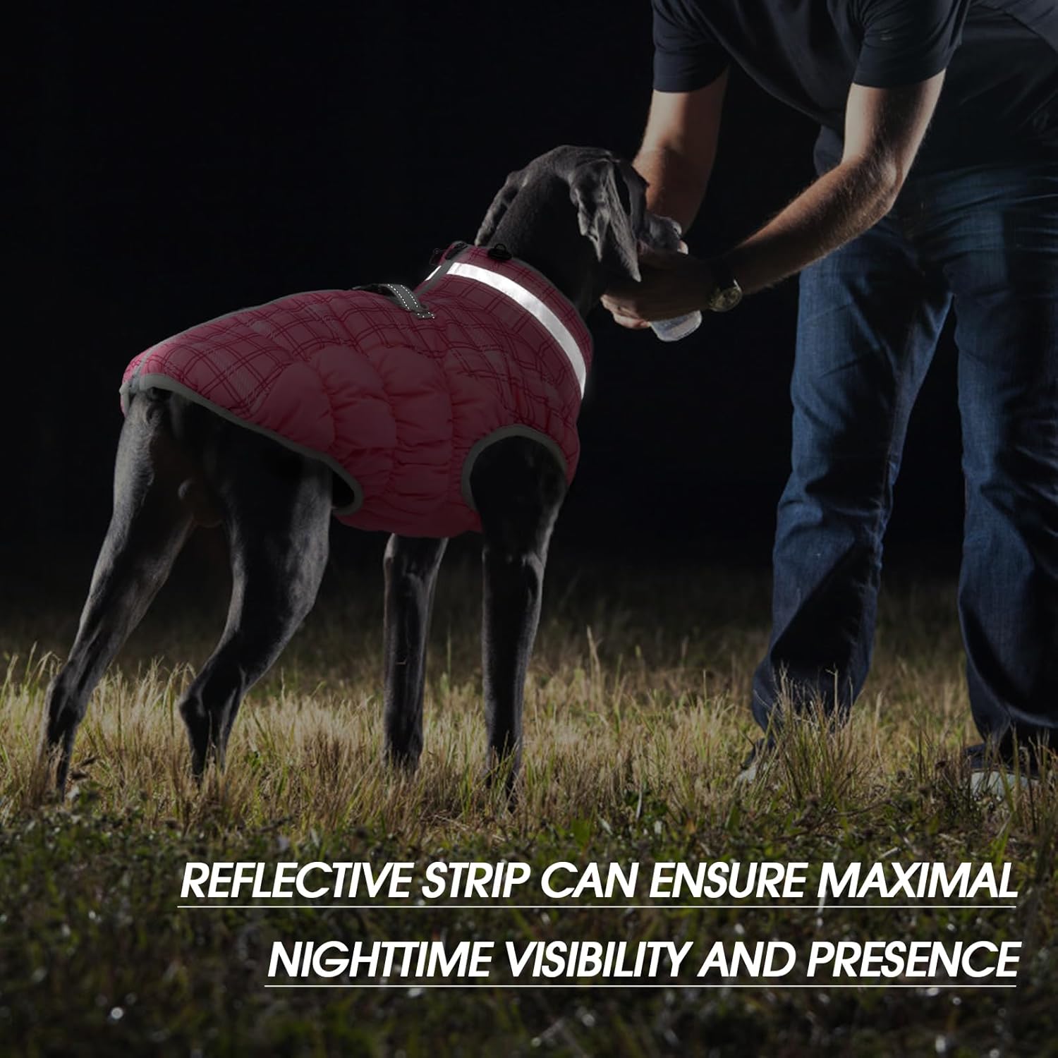 FUAMEY Dog Coat for Large Dogs,Waterproof Dog Winter Jacket with Harness Built in Puppy Cold Weather Coats Reflective Pet Vest with Zipper Warm Fleece Dogs Snowsuit Windproof Rose Plaid L