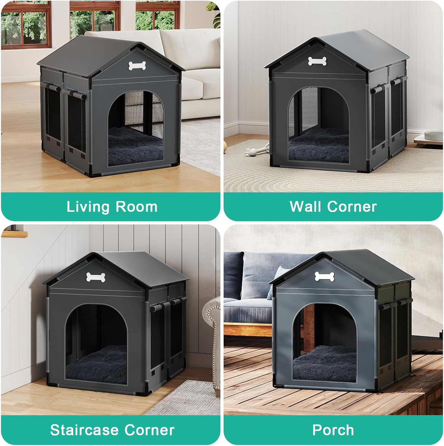 • Stable PVC Frame & 600D Thicken Oxford Cloth: The frame of our pet house is supported by plastic pipes. Compared to traditional soft dog houses made of plush fabric, our pet house will not easily be flattened by pets. In addition, our materials use outdoor windproof, UV-resistant, and rainproof Oxford cloth, ensuring the doghouse's high thermal insulation