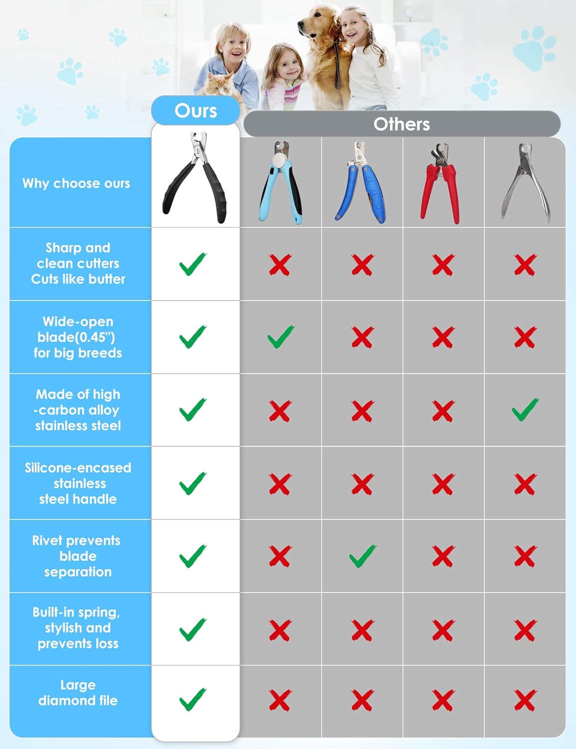 • Upgraded Open Wide: We listen to our customers–the blade opening has been increased to 0.45 inches to better fit the circumference of any giant breed dogs