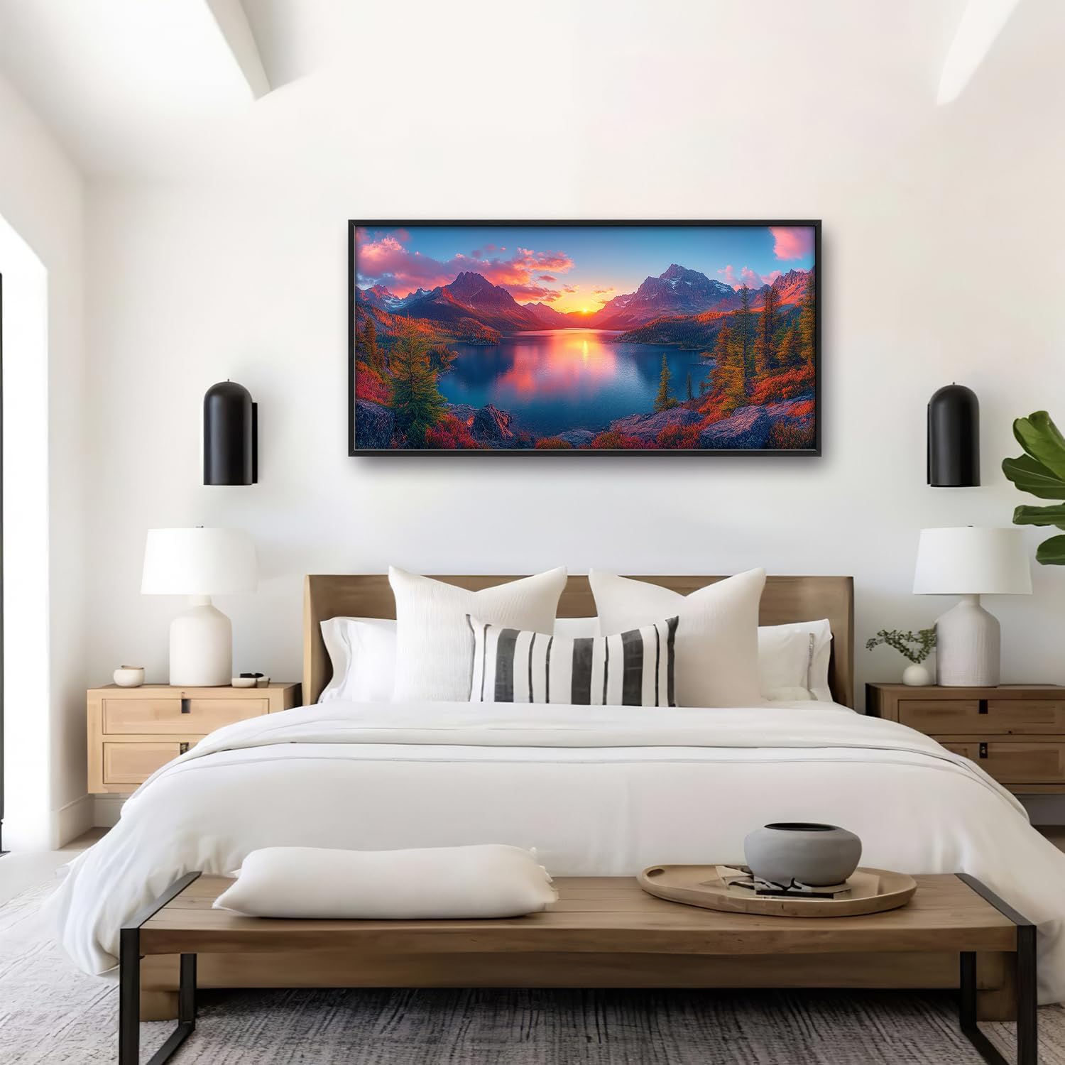 Large Lake Mountain Landscape Wall Art for Living Room, Nature Sunrise Canvas Oversized Wall Decor, River Forest Scenery Framed Pictures Painting Print Artwork for Bedroom Office 60"L x 30"W