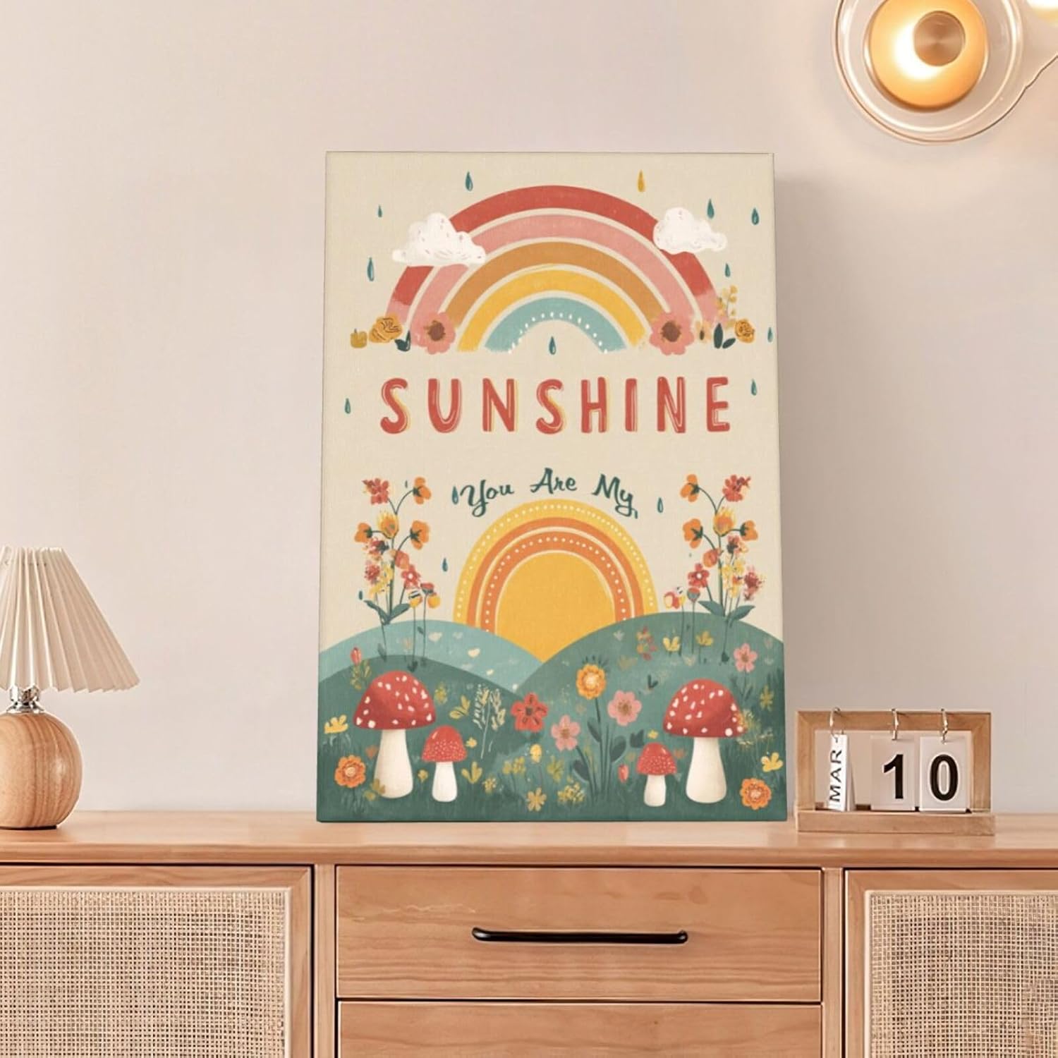You Are My Sunshine Inspirational Canvas Wall Art Motivational Encouragements Wall Decor First Communion Gifts for Girls Boys Toddler Teens Pictures Painting Print Artwork Framed Decorations Nursery Dorm Bedroom 16"x24"