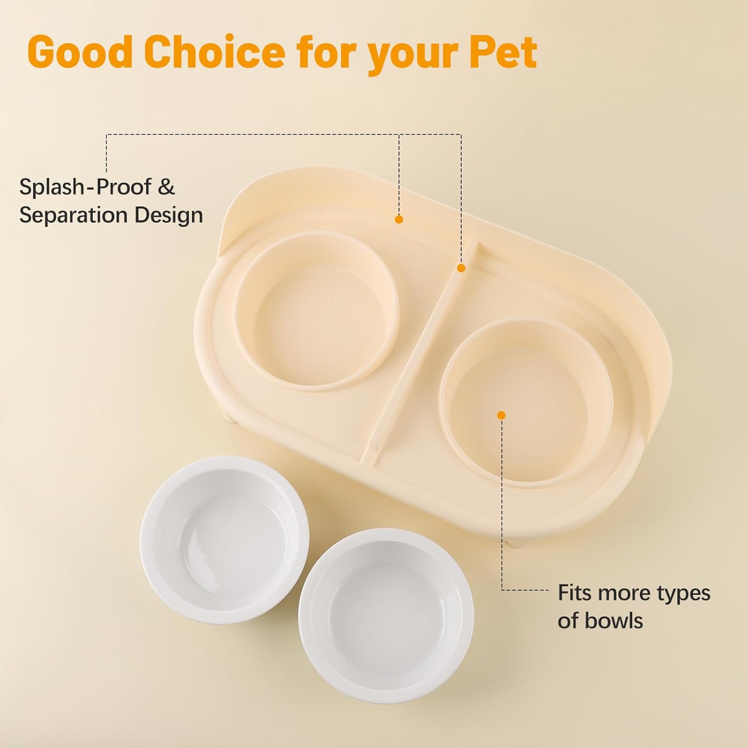 • Splash-Proof and Partition Design: Our cat bowls are designed with a splash-proof high edge to minimize food spills around the feeding area. Also having a dividing line between two cat bowls reduces cat food falling into the water bowl. Keep your home floor clean.