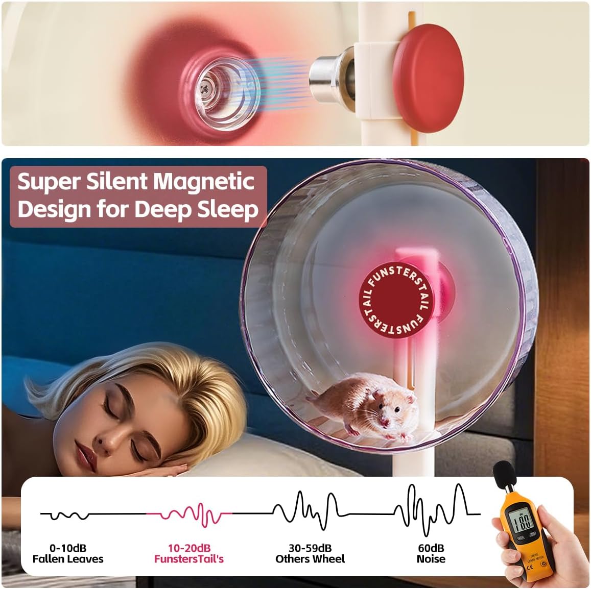 • Super Silent Night Runs: Our magnetic axle design eliminates friction noise, making it ideal for late-night use. Perfect for light-sleeping owners or cage setupsโ€”your dwarf hamster or hedgehog can run freely without disturbing your sleep