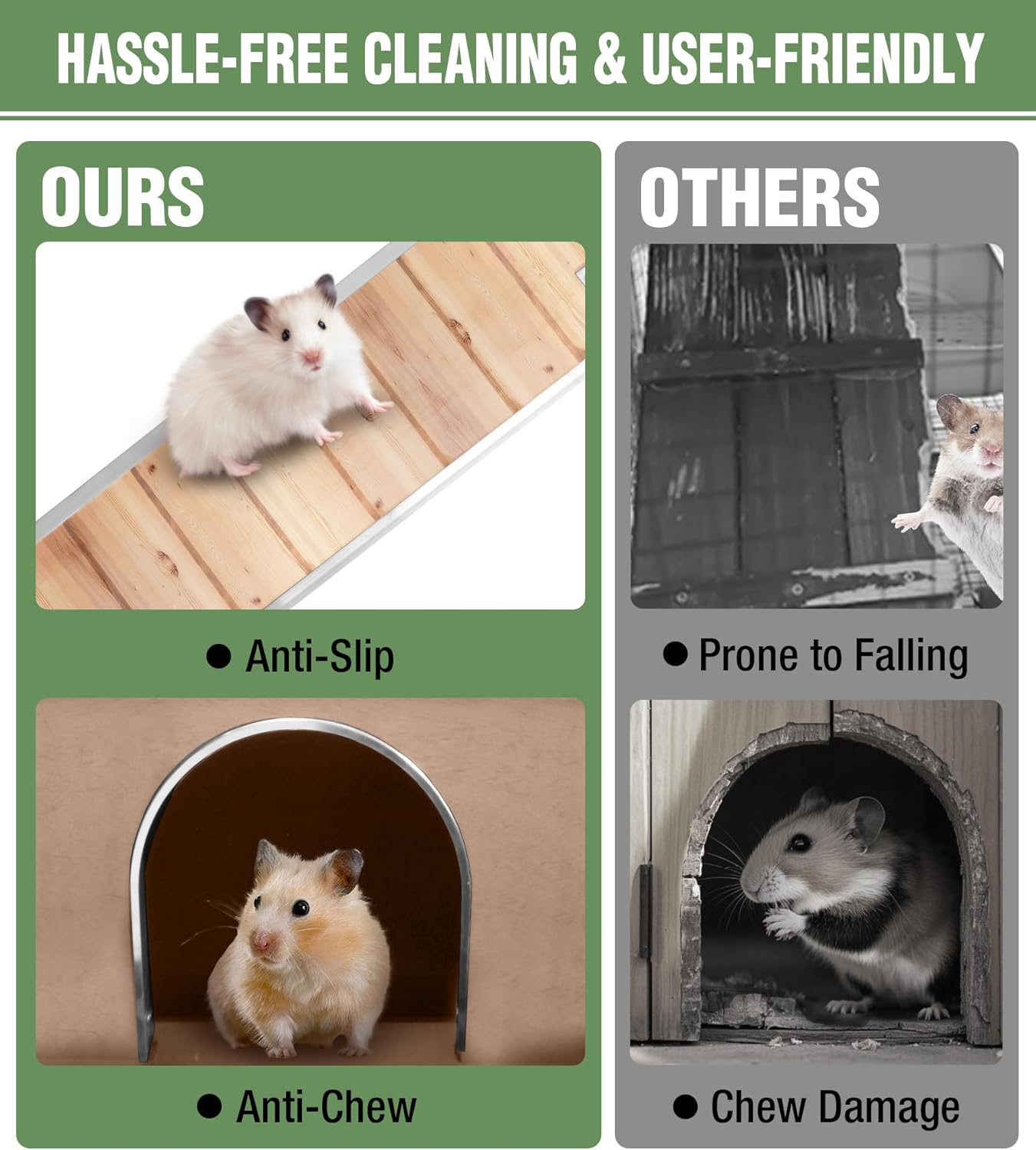 • ๐‘๐ž๐ฆ๐จ๐ฏ๐š๐›๐ฅ๐ž ๐–๐ข๐ซ๐ž ๐Œ๐ž๐ฌ๐ก ๐…๐ฅ๐จ๐จ๐ซ - Metal wire netting above the leakproof tray elevates pets, preventing contact with waste while allowing debris to fall through. Easy to remove for quick cleaning, keeping your small animal hygienic with minimal effort