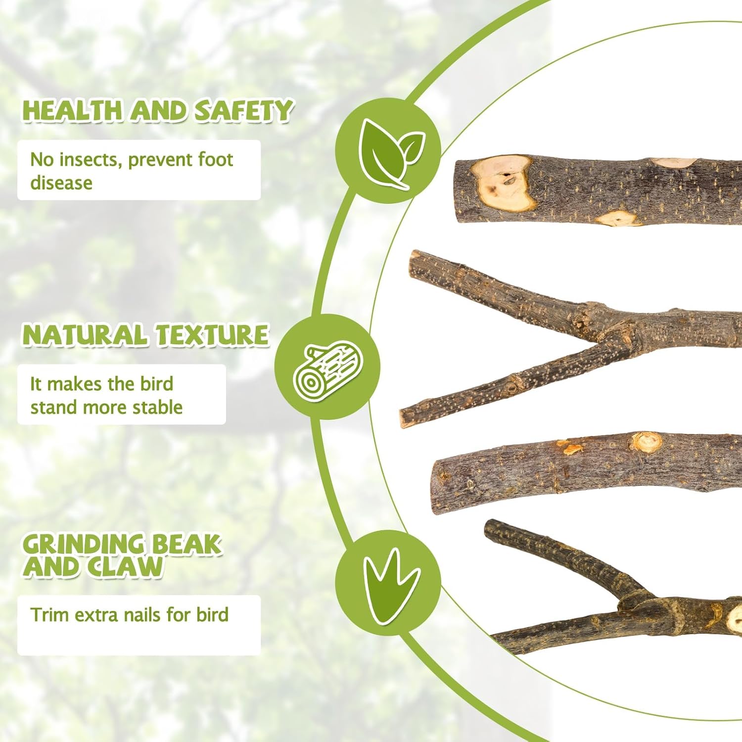 • Varied Shapes for Enrichment - Includes naturalistic branches, forks, and platforms to create stimulating climbing environments that mimic birds' wild habitats.