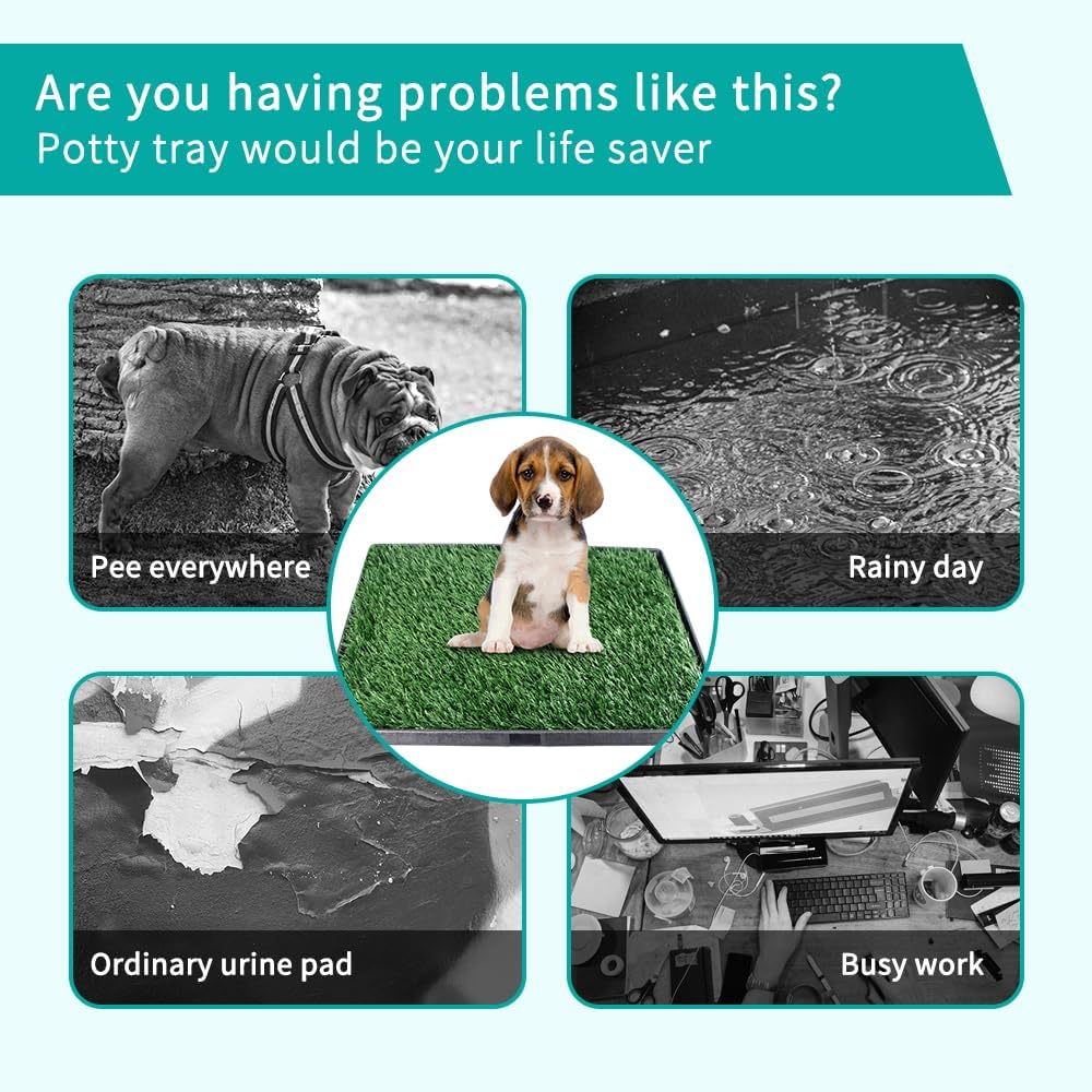 • MULTIFUNCTIONAL INDOOR DOG POTTY:This dog grass pad with tray is the perfect indoor dog potty system for medium and large dogs, providing a clean and convenient potty solution for apartments, balconies, porches, or homes without outdoor access