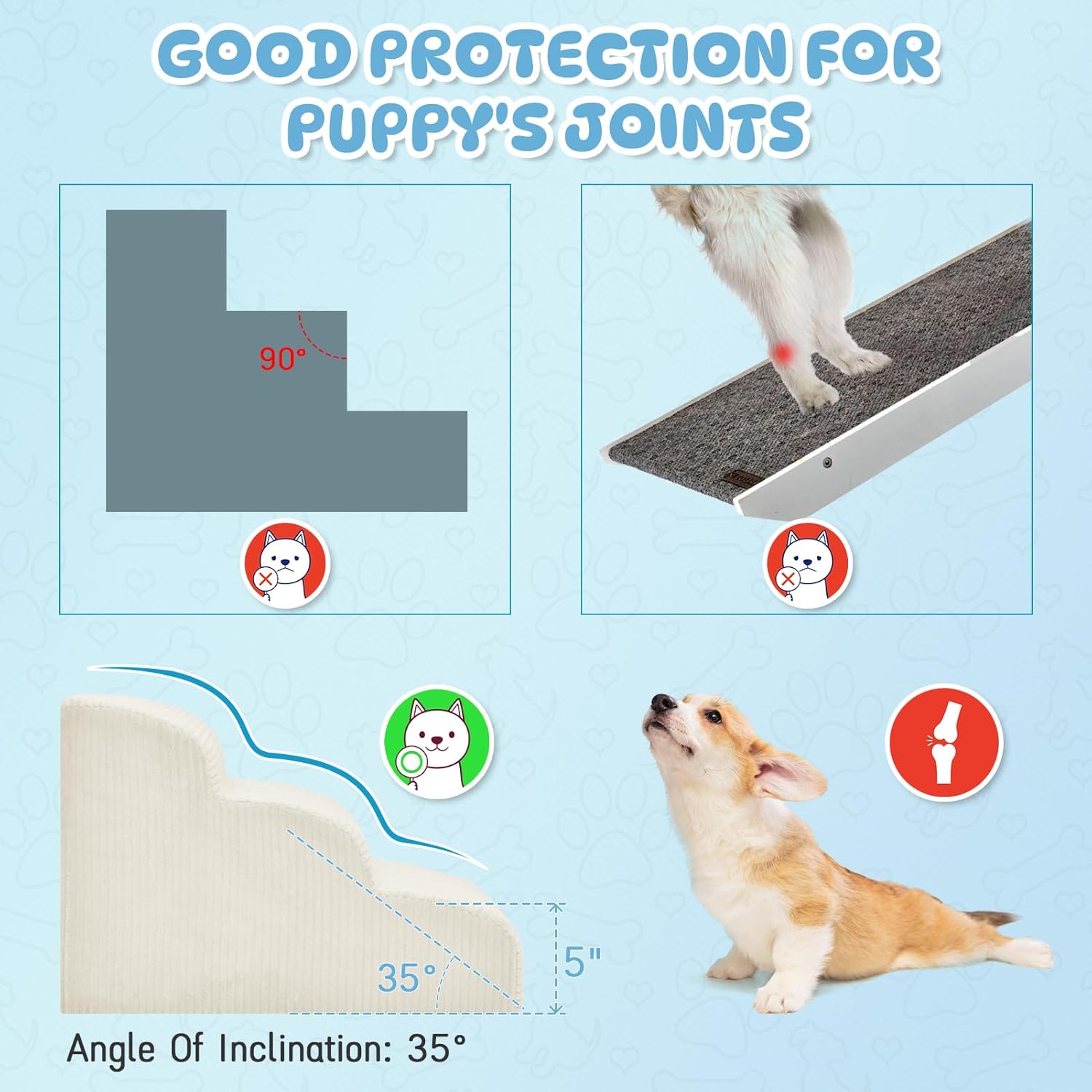 • 【Protect the Dog's Joints & Knees】35° scientific bevels of Mesa Lemon pet stairs can reduce your pet climbing legs' burden, and arc surface design is more friendly to pets with reduced mobility, protecting your dog's joints and lumbar vertebrae fully.
