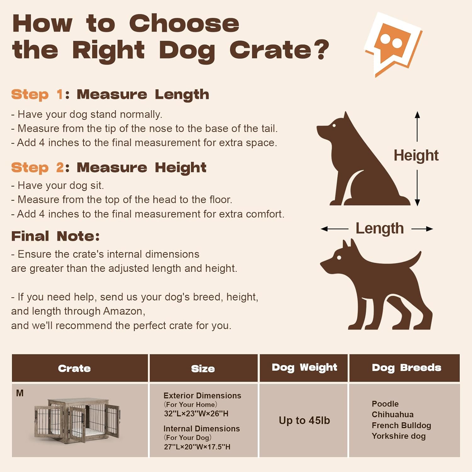 • Modern Wooden Dog Crate – A chic end table dog crate that complements any décor. Great for small & medium dogs, this dog crate furniture combines practicality with aesthetic appeal for pet owners who value design.