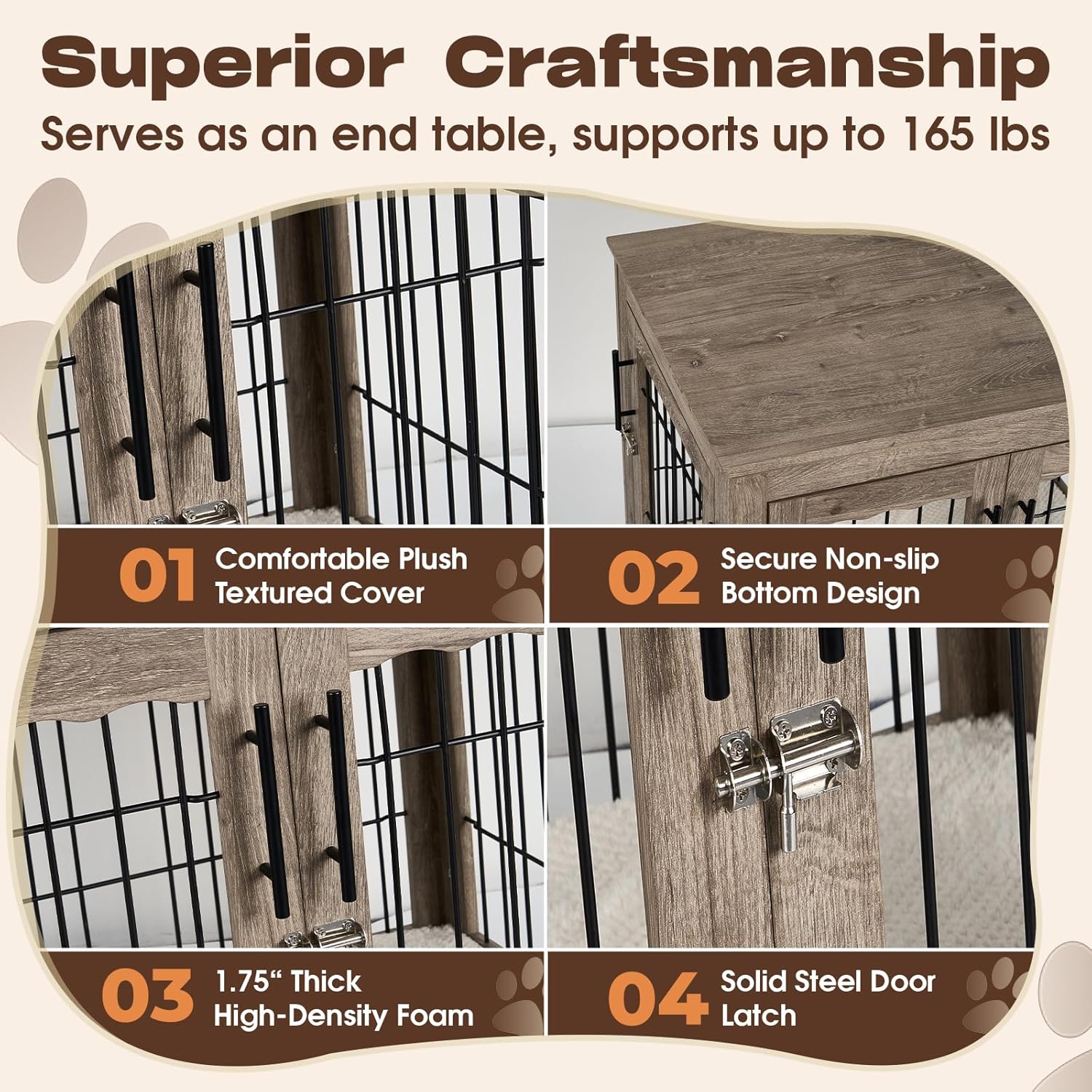 • Multi-Functional Dog Cage Furniture – Use as a decorative dog crate in your living room, entryway, or bedroom. The spacious top (150 lb capacity) holds plants, lamps, or photo frames, making it a versatile furniture-style dog crate.