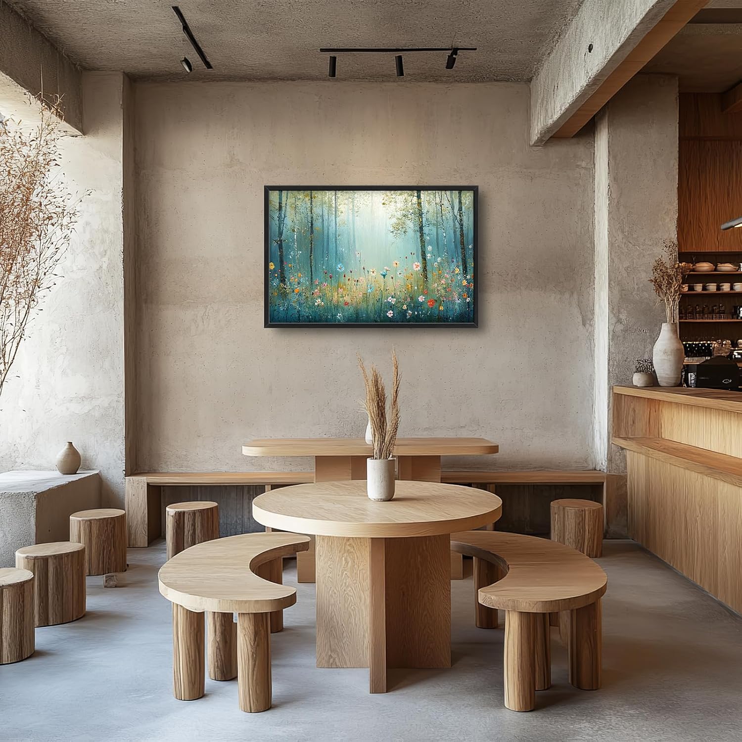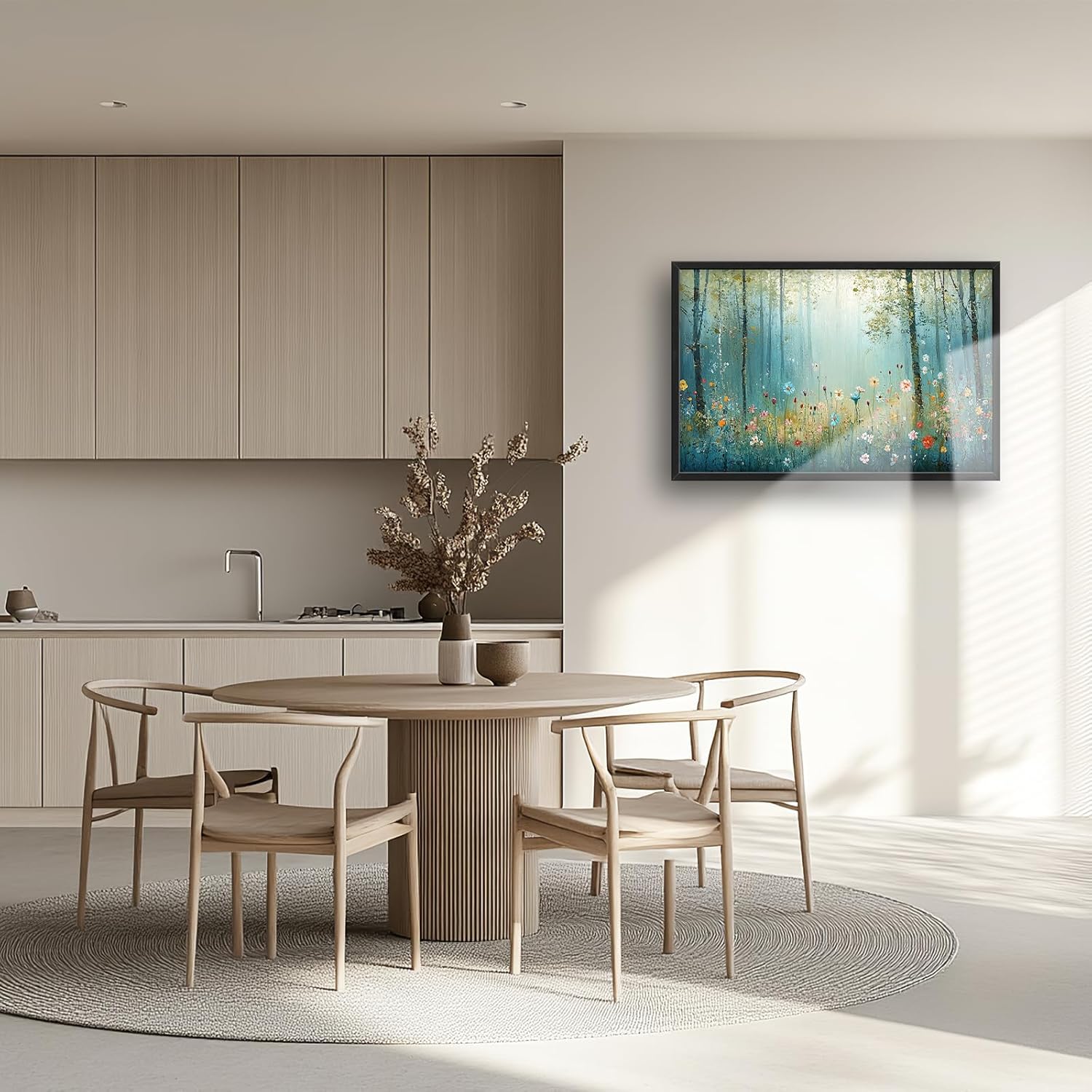 Large Forest Tree Wall Art for Living Room, Framed Oversized Wildflowers Wall Decor, Foggy Landscape Canvas Painting Modern Artwork Home Decoration for Dining Room Bedroom Office 36"x24"