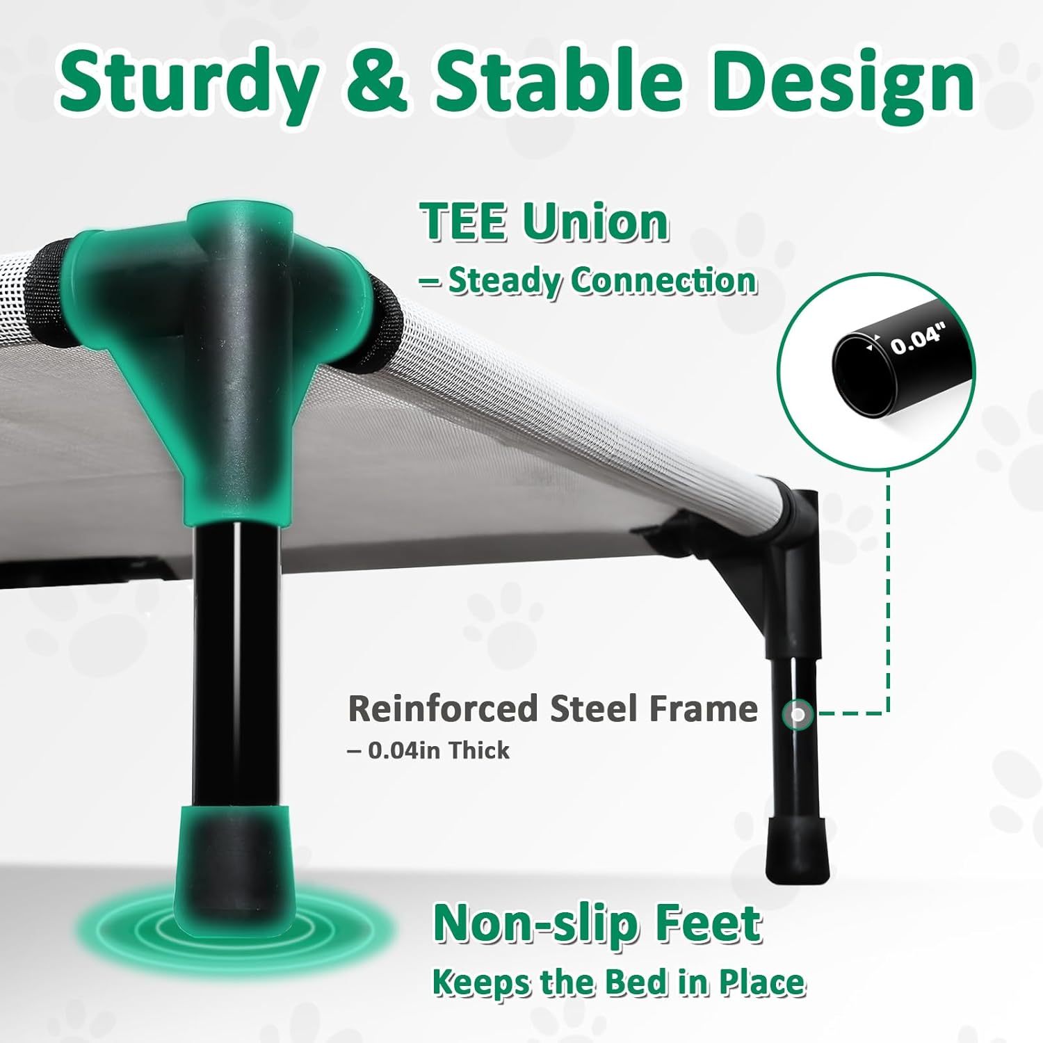 • BREATHABLE TESLIN MESH: This outdoor dog bed comes with breathable and durable Teslin mesh, provides airflow and firm support to relieve joint pressure. Our dog cot bed is suitable for dogs of all life stages, from puppy to the senior