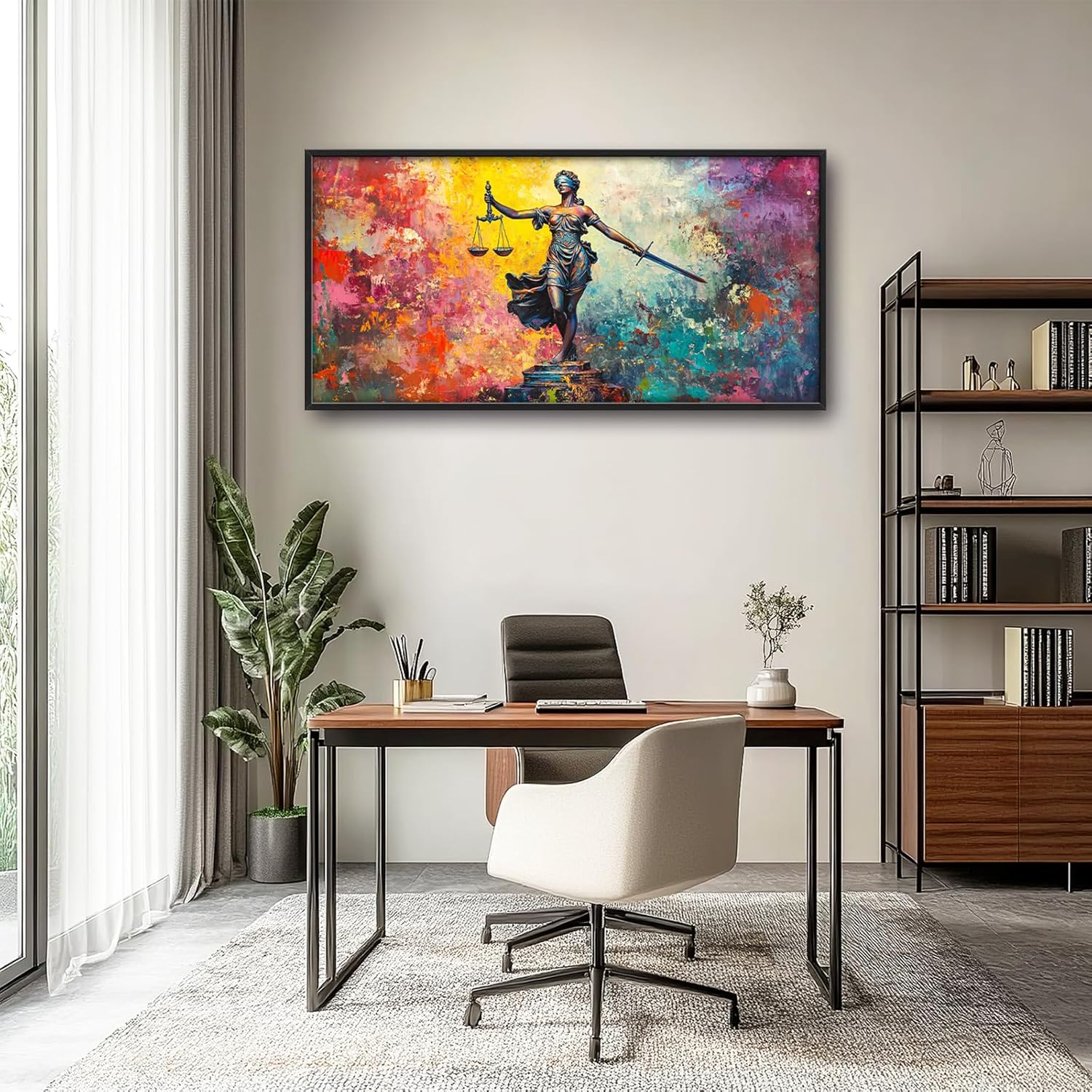 Extra Large Lady Justice Framed Wall Art for Living Room,Oversized Scales of Justice Pictures Wall Decor,Abstract Colorful Canvas Print Painting Modern Artwork Bedroom Office Bathroom 60L" x 30W"