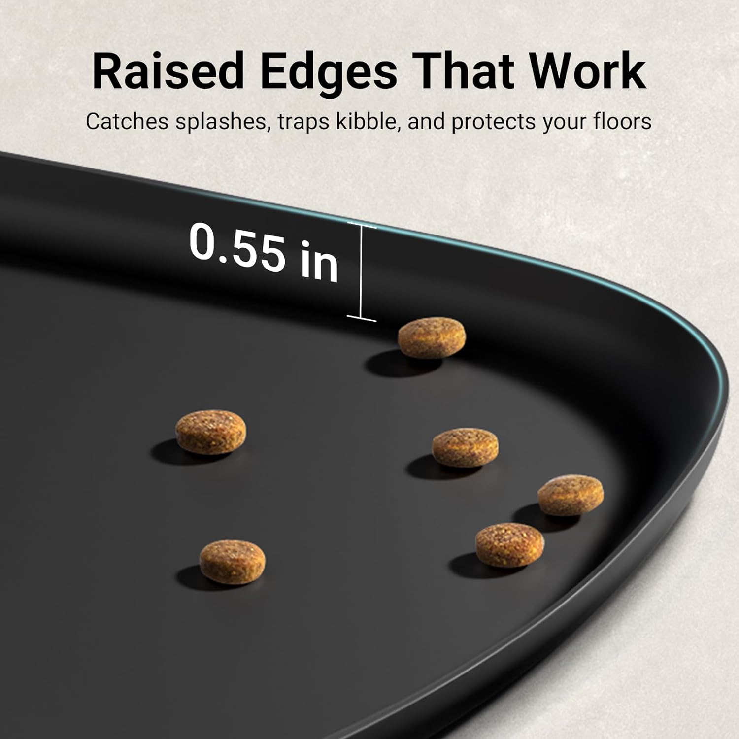 • Stop Messes, Start Happy Mealtimes: Designed with a 0.55 inch high rim around all sides, the pet food mat keeps spills, water splashes, and food crumbs securely contained. The dog water mat keeps floors dry and giving messy eaters freedom to enjoy food